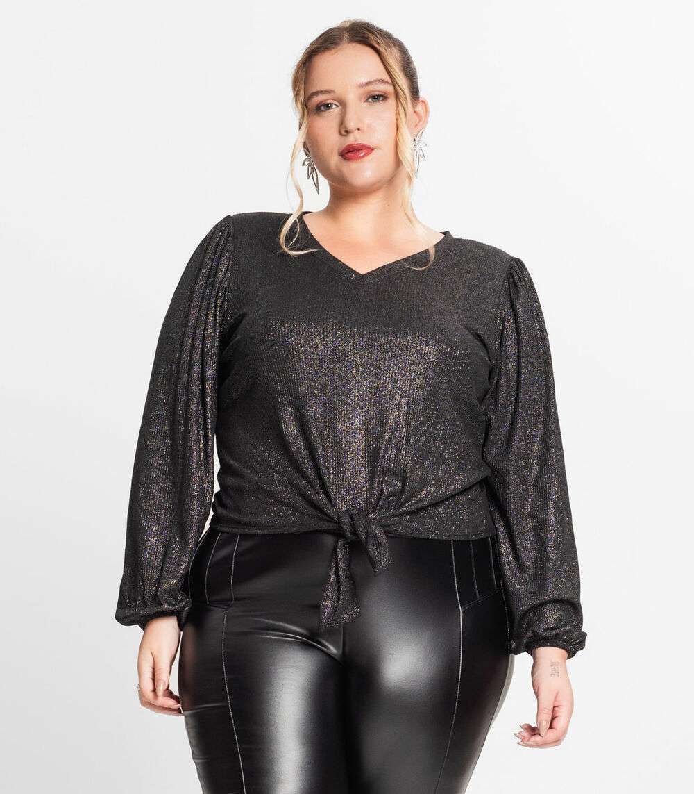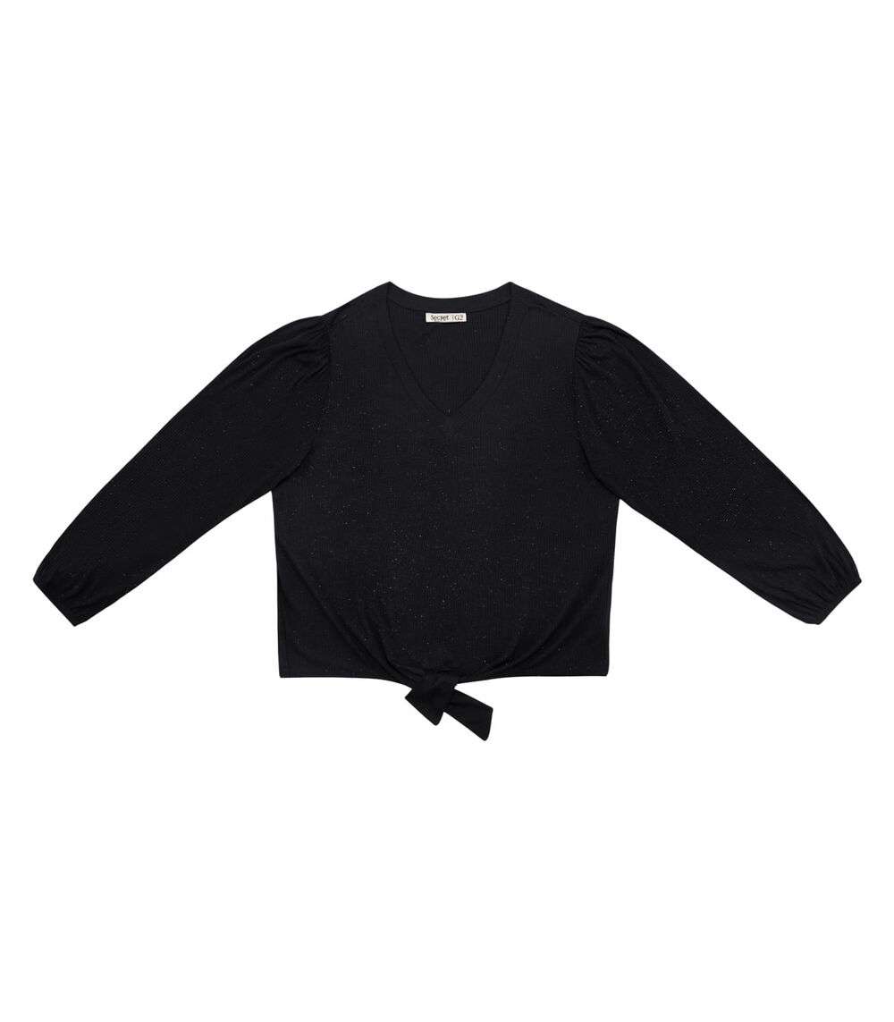Blusa Manga Longa Em Ribana Canelada Secret Glam Preto
