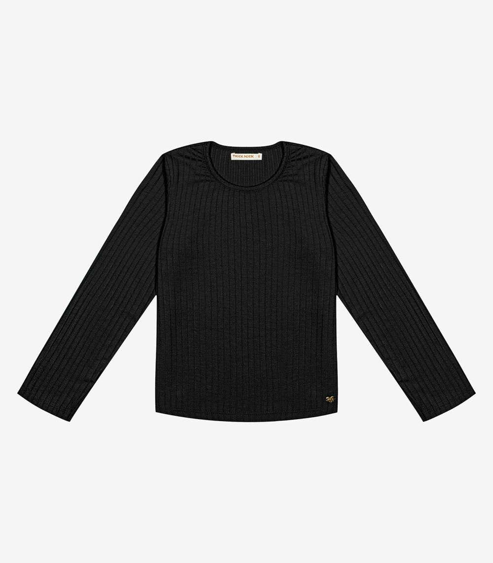 Blusa Manga Longa Feminina Ribana Trick Nick Preto
