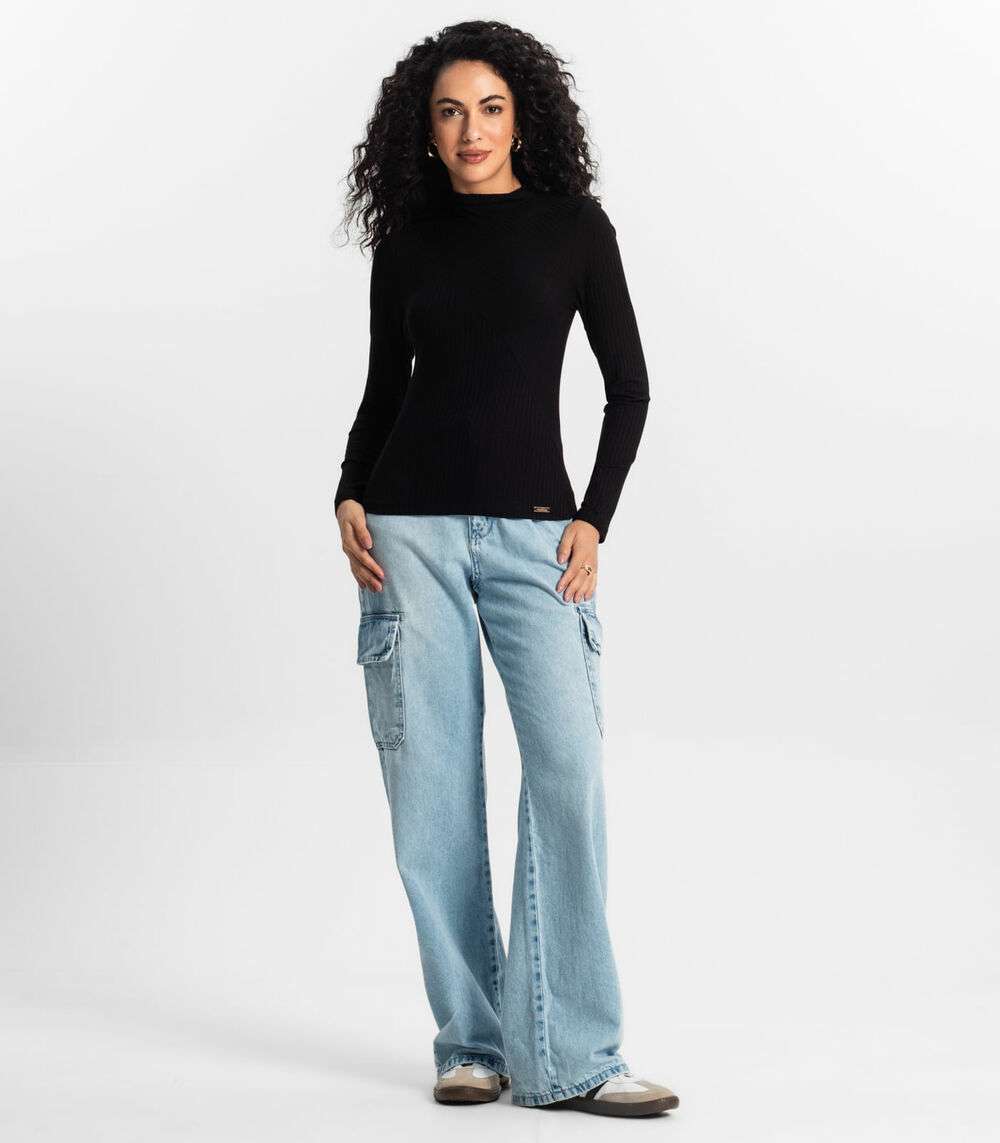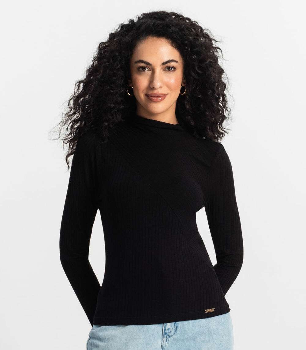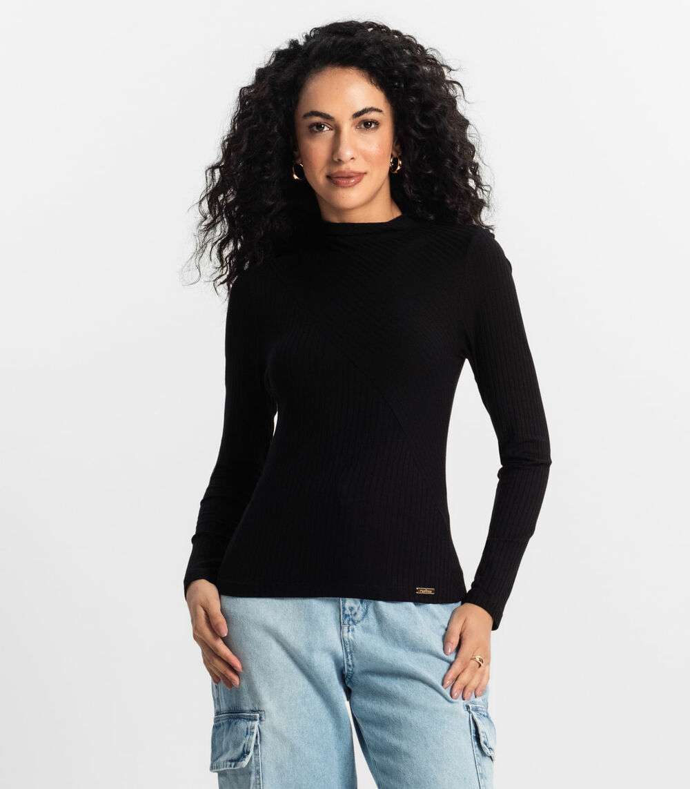 Blusa Manga Longa Feminina Rovitex Preto