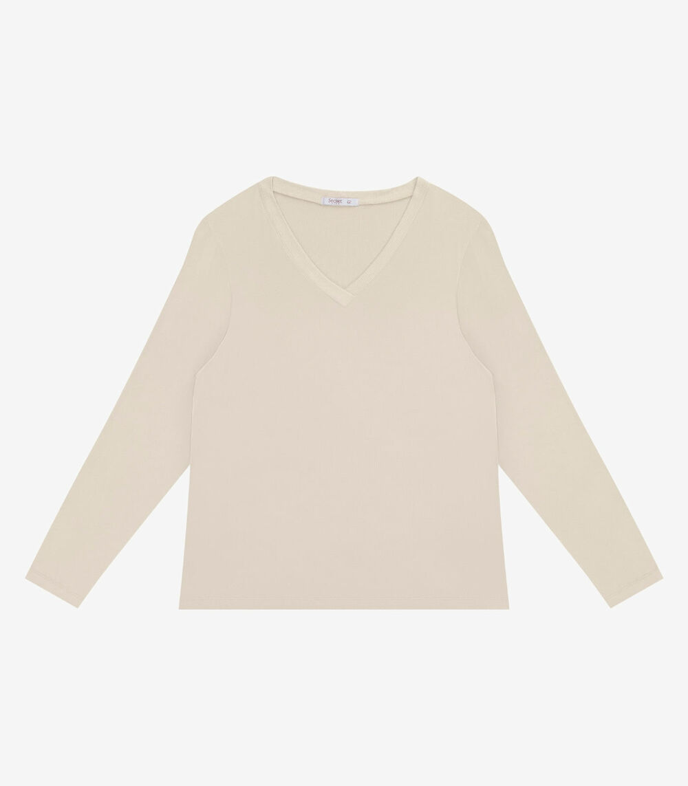 Blusa Manga Longa Visco Tricot Secret Glam Bege