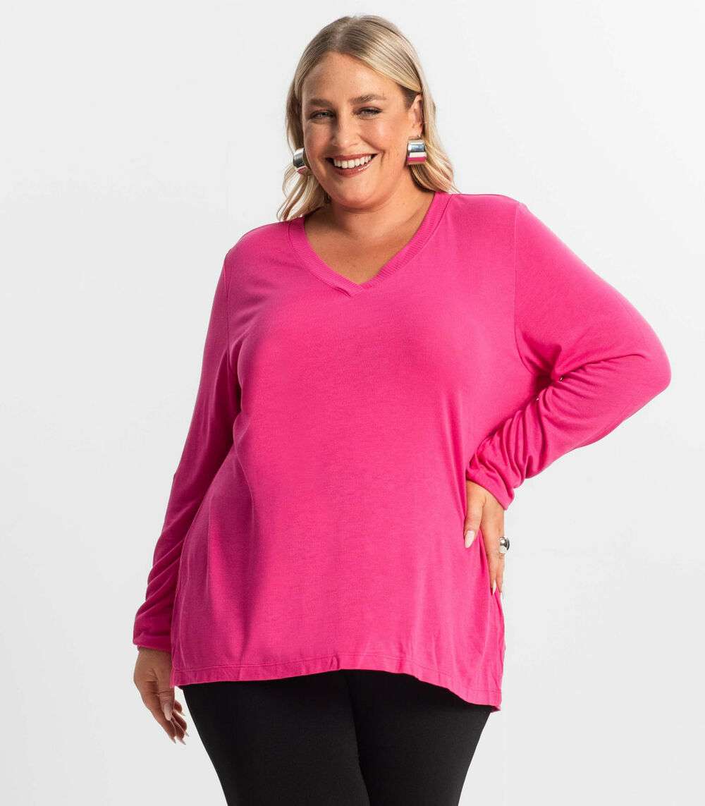 Blusa Manga Longa Visco Tricot Secret Glam Rosa