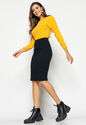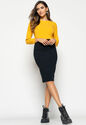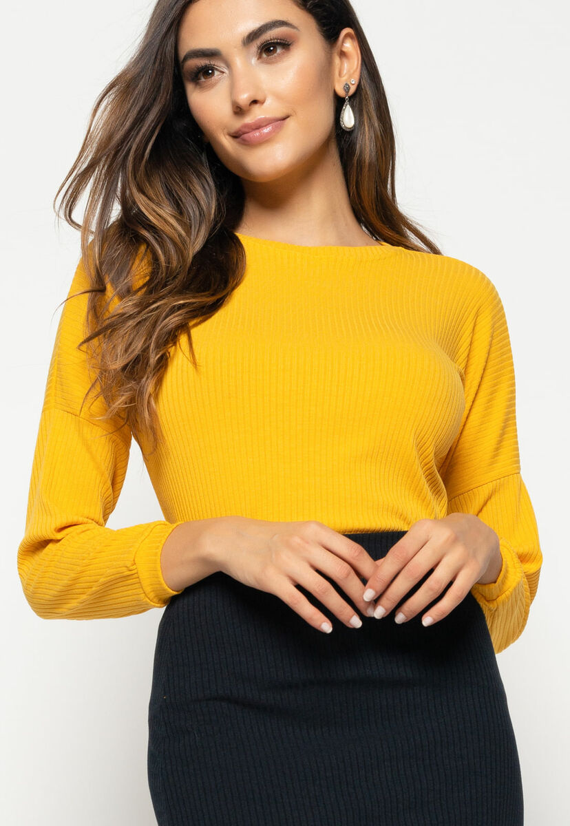 Blusa Morcego Gola Canoa Manga Longa Canelada Mostarda