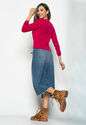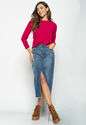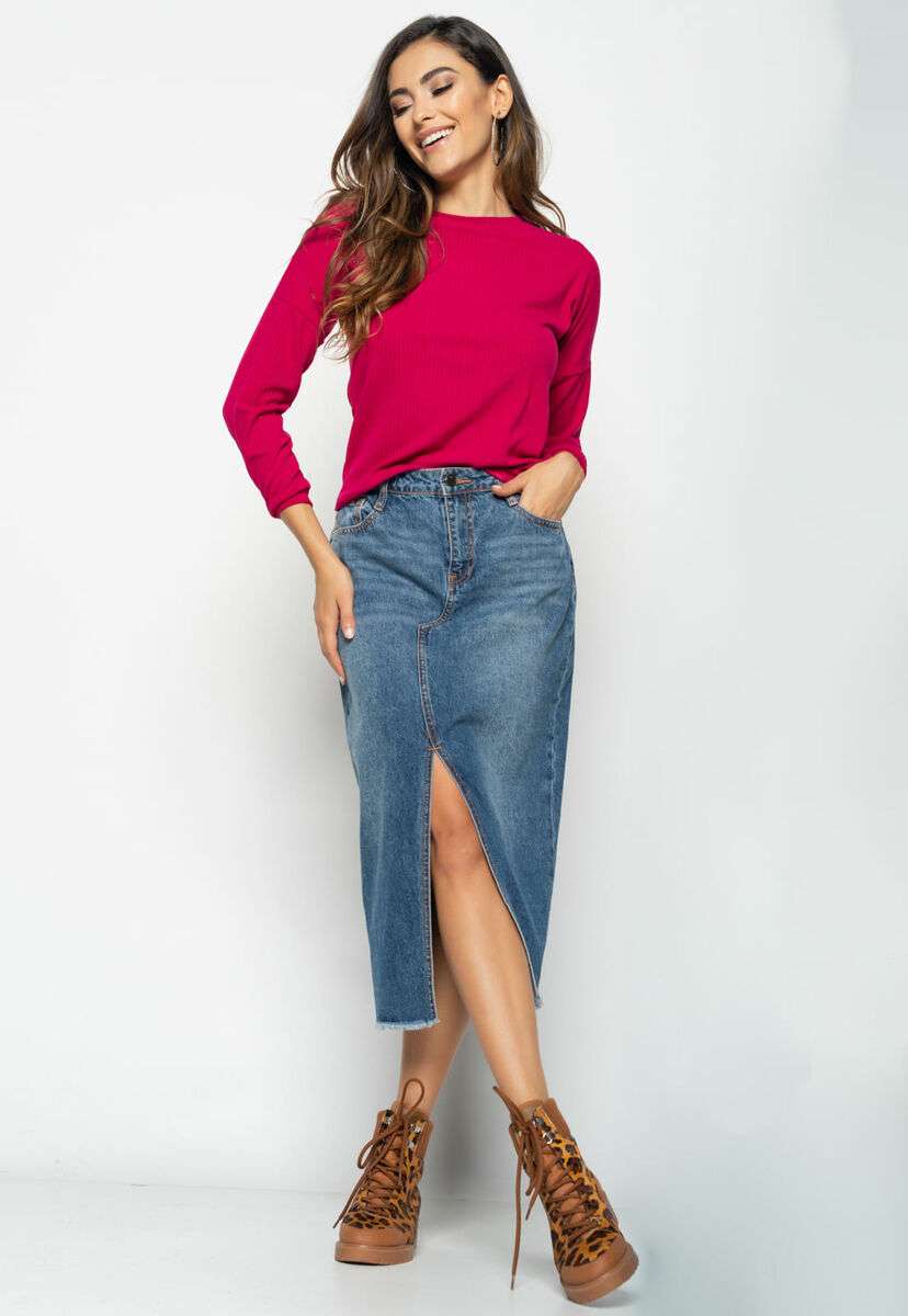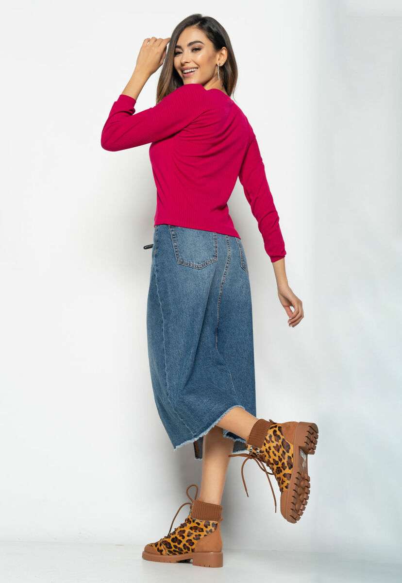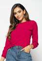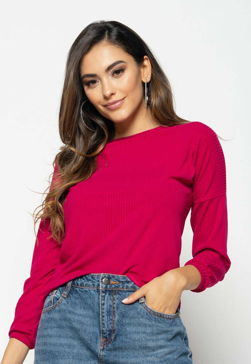 Blusa Morcego Gola Canoa Manga Longa Canelada Rosa