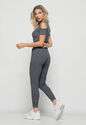 Blusa Ombro Vazado Manga Curta Canelado Grafite