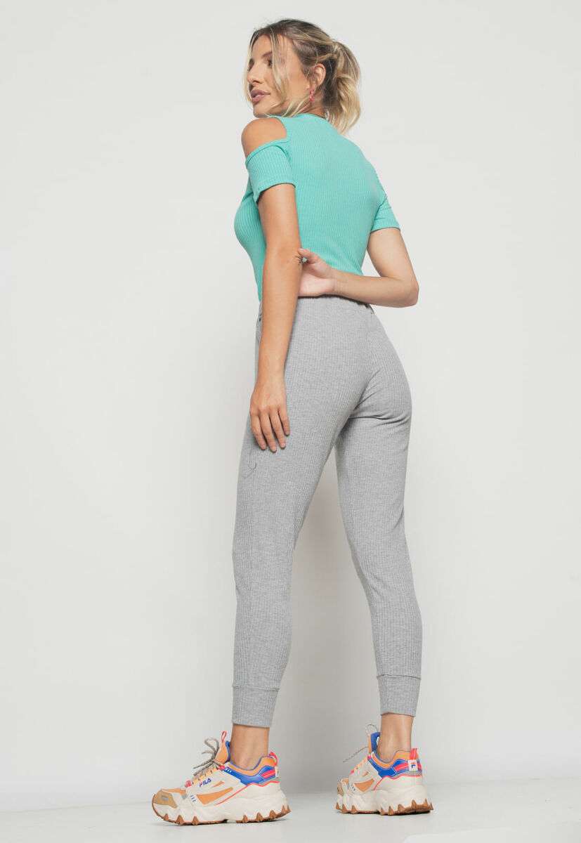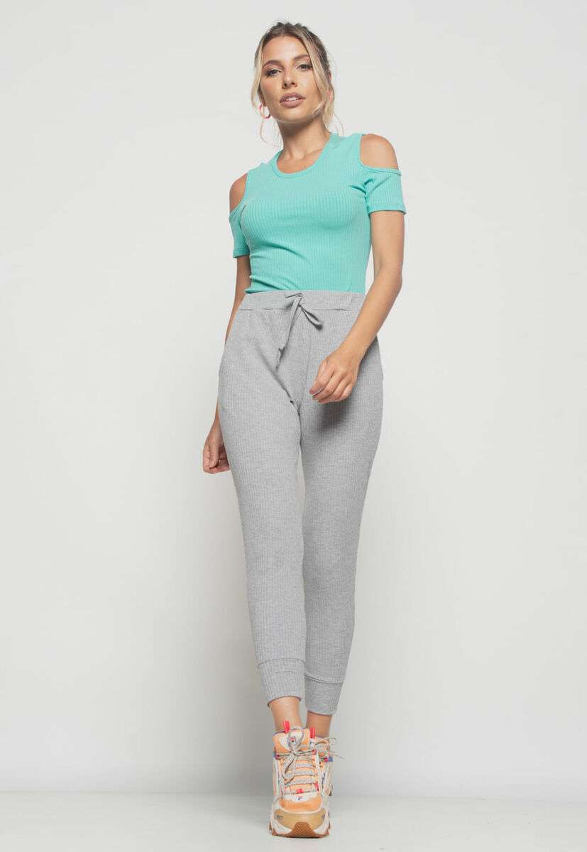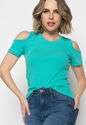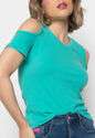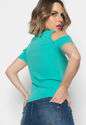 Blusa Ombro Vazado Manga Curta Canelado Verde