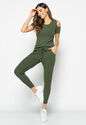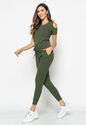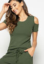Blusa Ombro Vazado Manga Curta Canelado Verde Militar