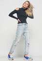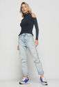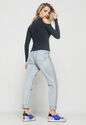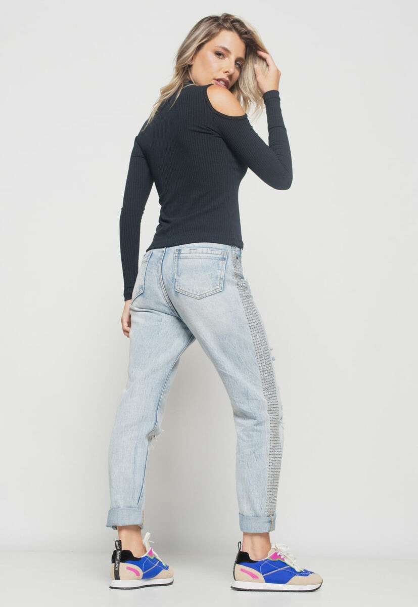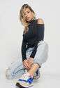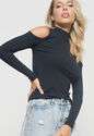 Blusa Ombro Vazado Manga Longa Canelada Preta