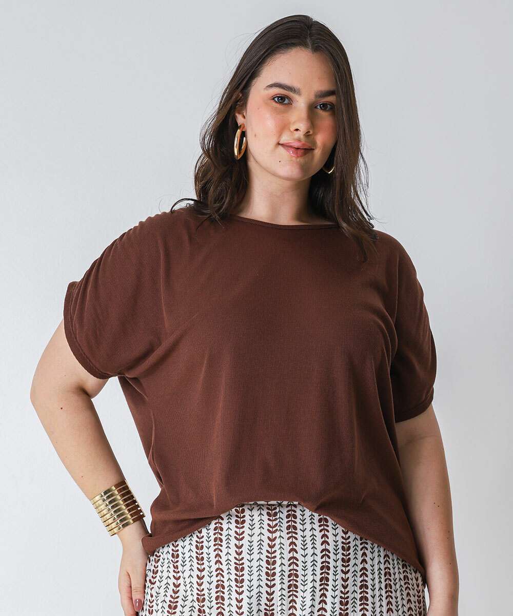 Blusa Plus Size Feminina Canelada Marisa Marrom