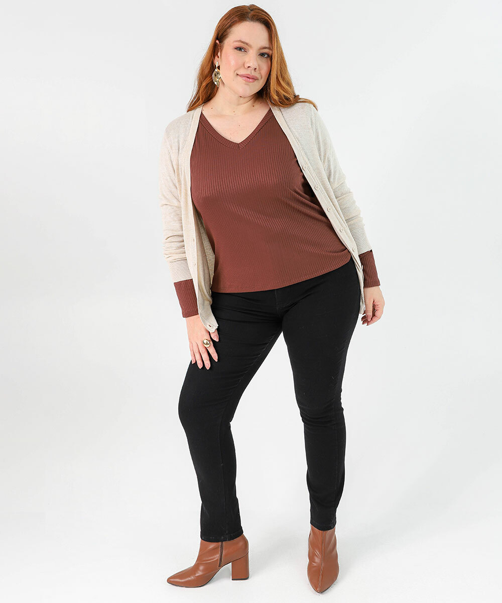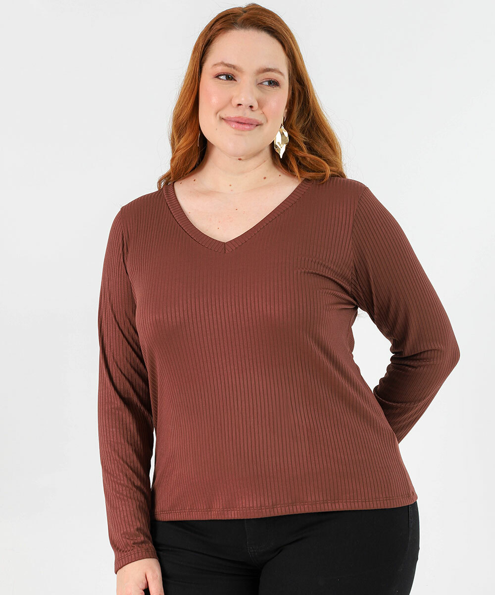 Blusa Plus Size Feminina Canelada Marisa Marrom