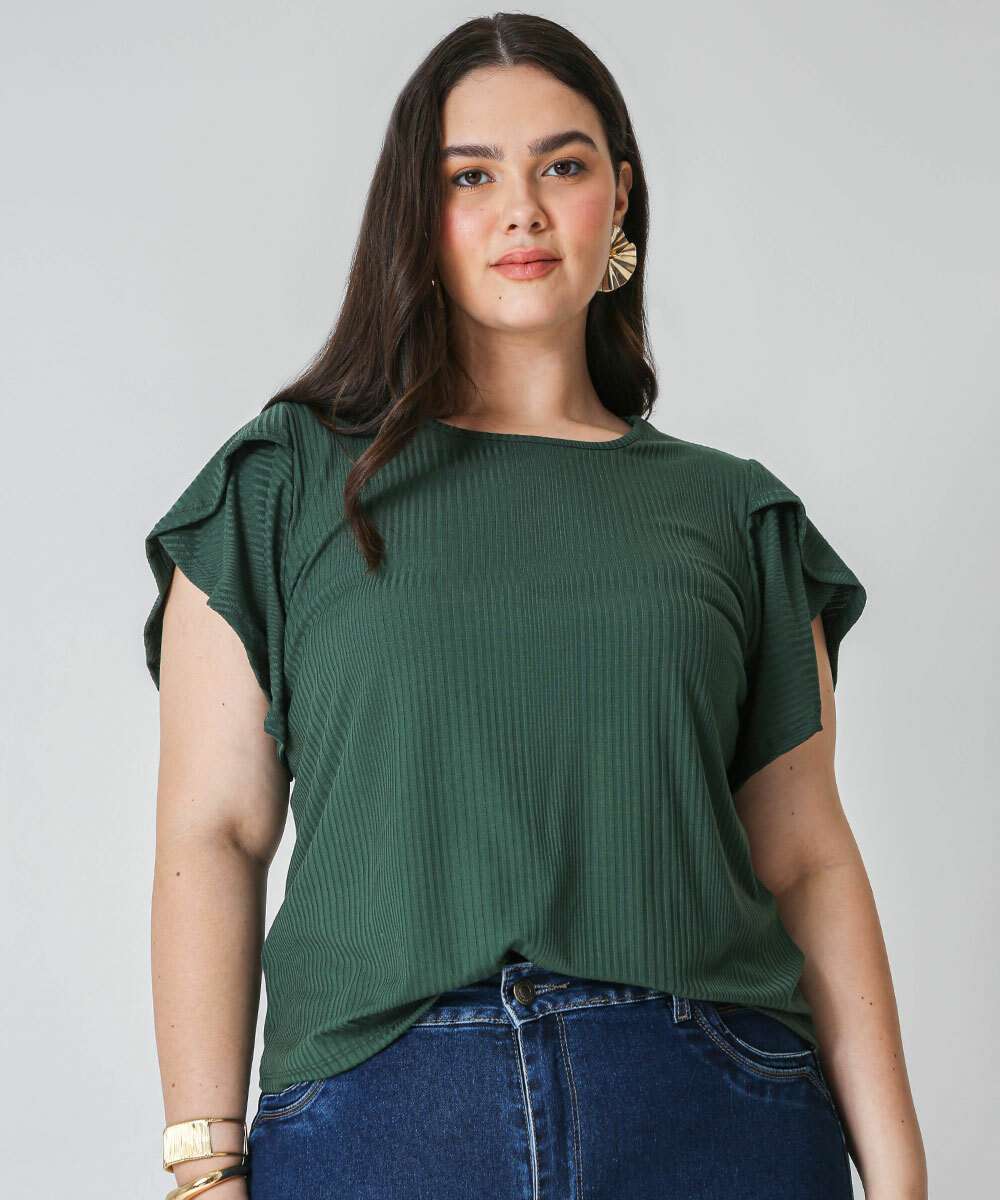 Blusa Plus Size Feminina Canelada Marisa Verde