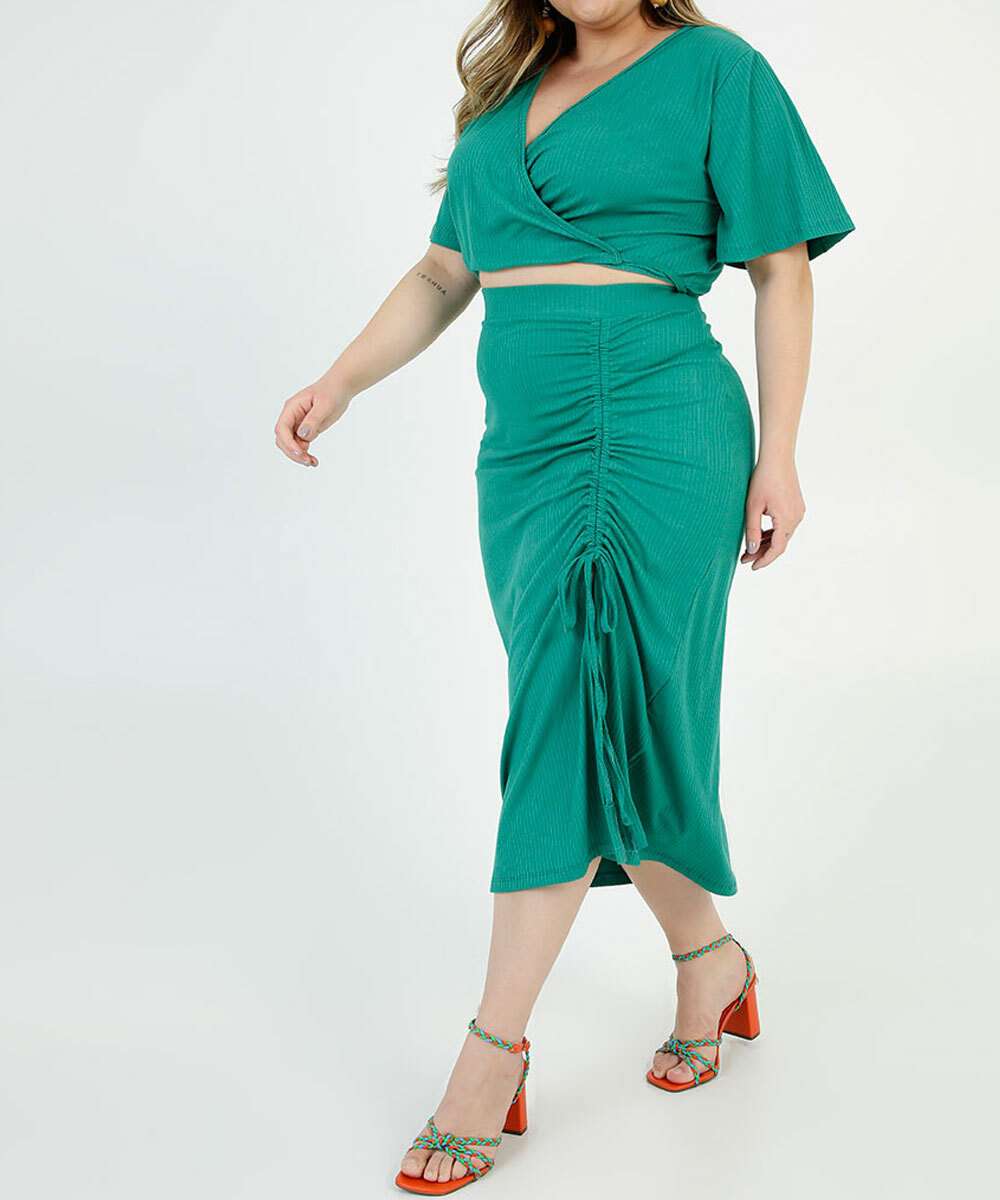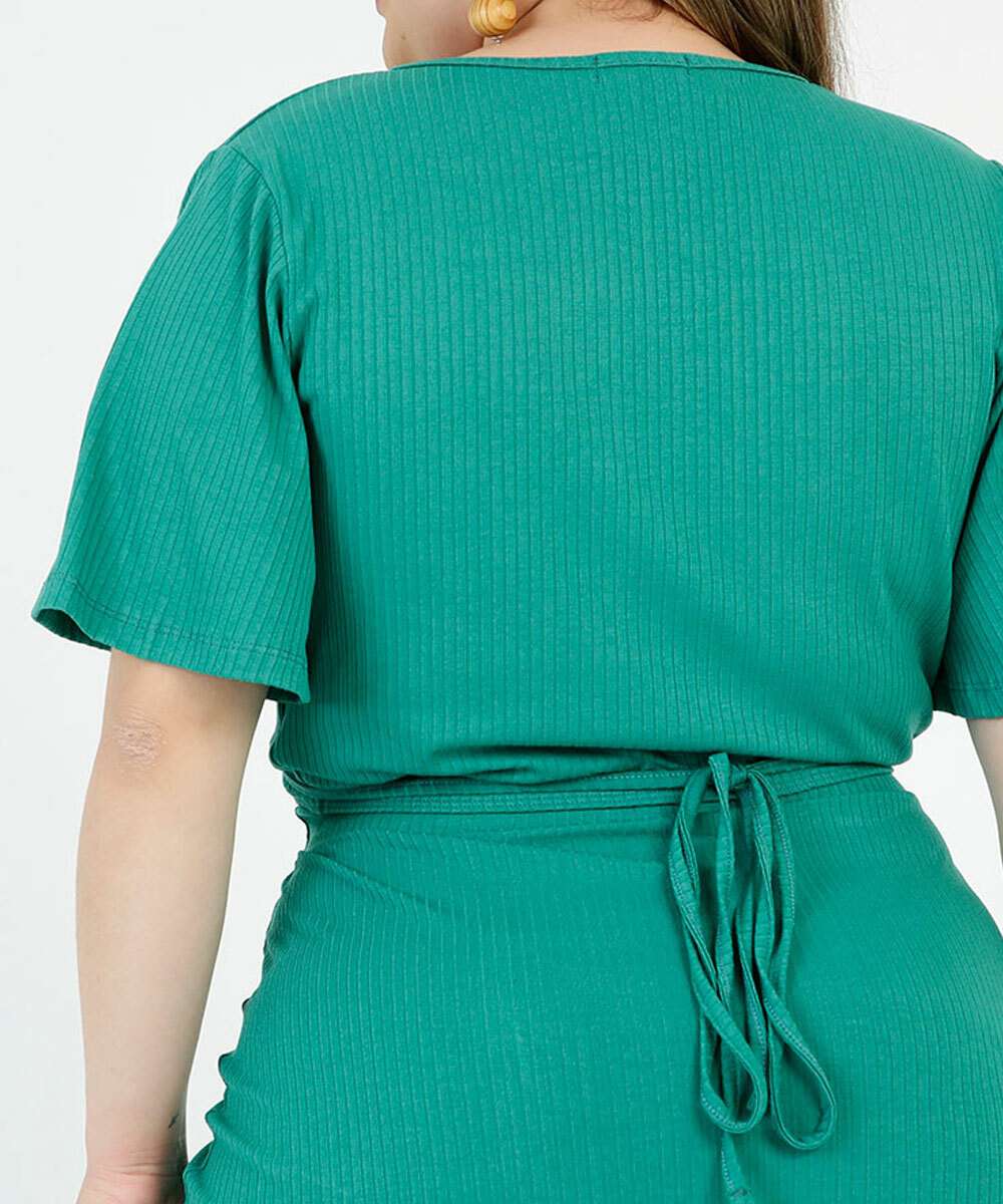 Detalhes adicionais: cropped, plus size, canelado, transpassado, manga curta