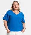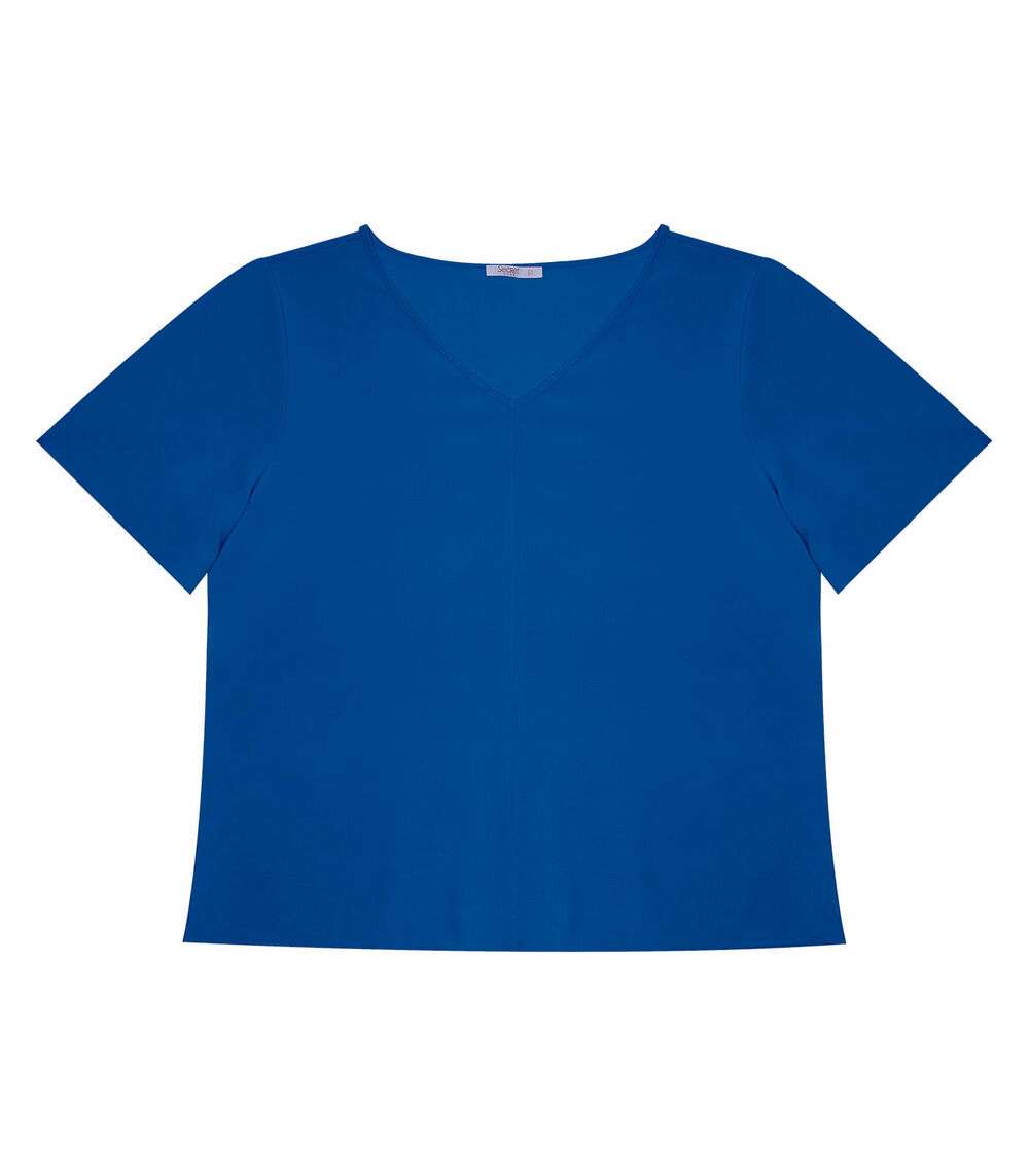 Blusa Plus Size Feminina Decote V Secret Glam Azul
