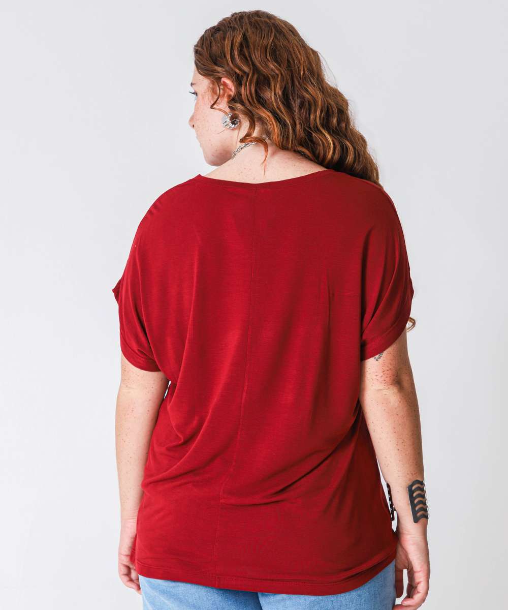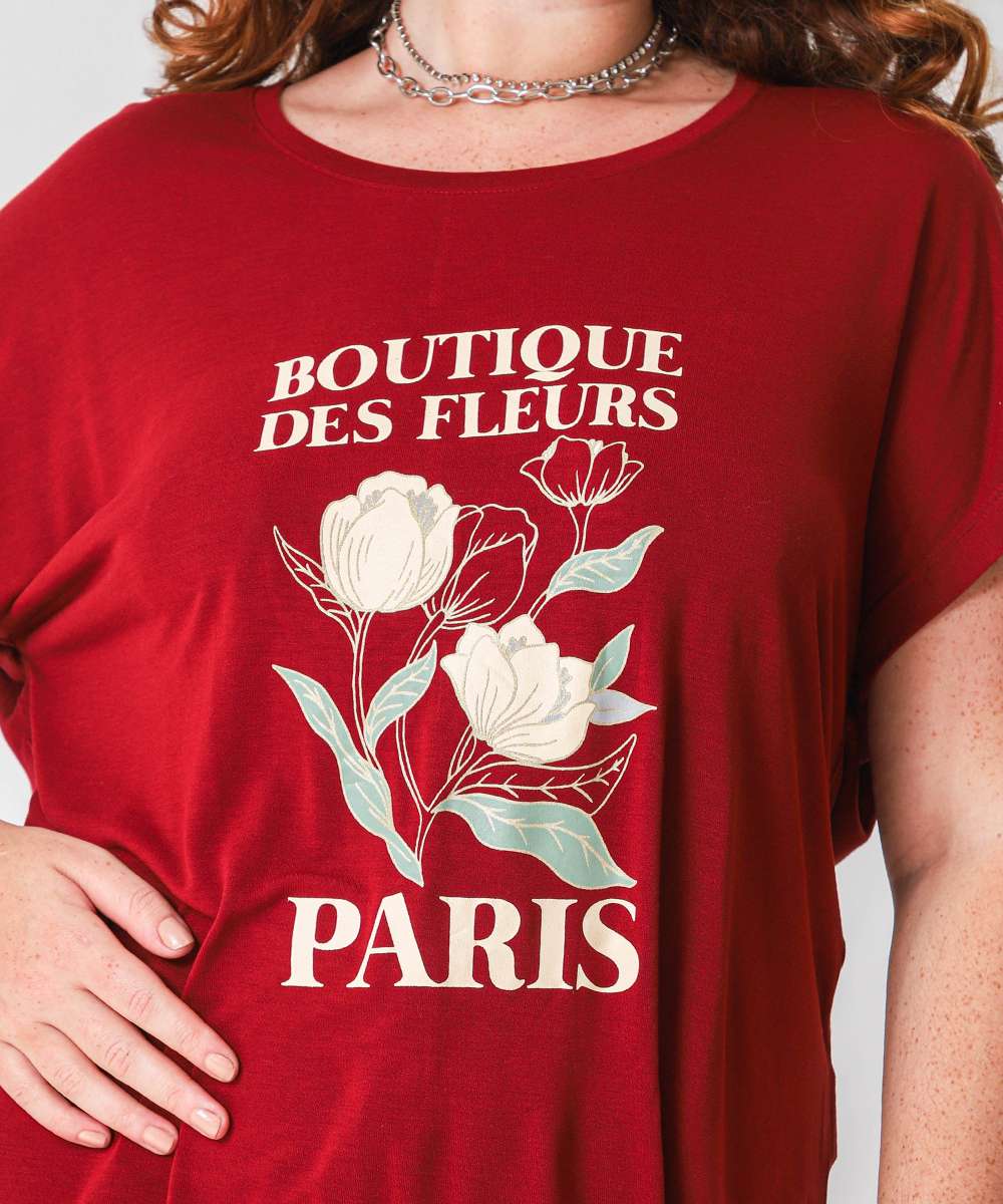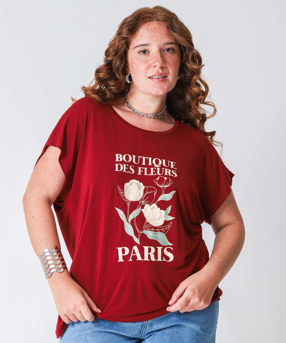 Blusa Plus Size Feminina Estampa Flor Marisa Vermelho