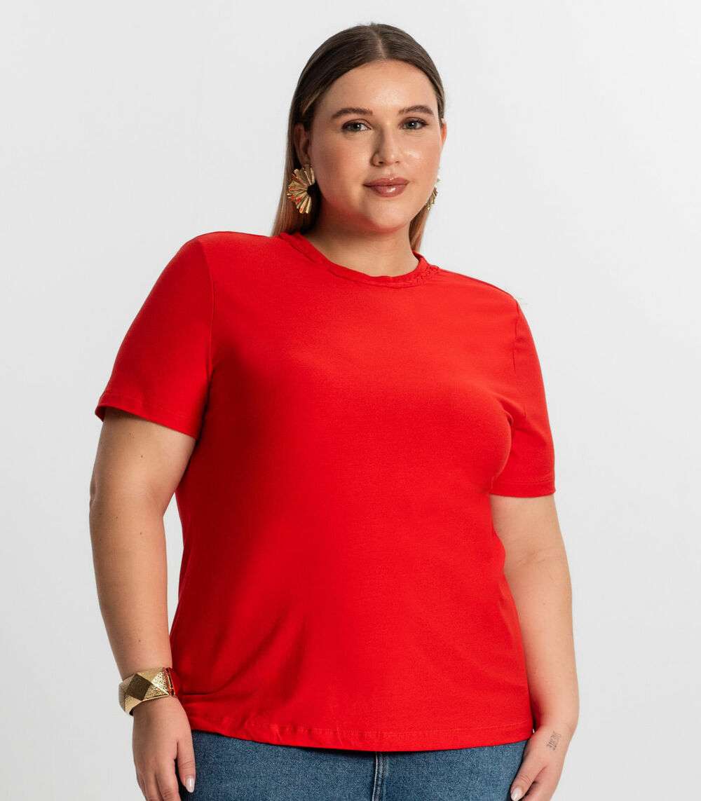 Blusa Plus Size Feminina Manga Curta Secret Glam Laranja