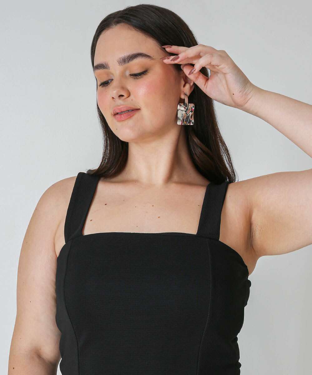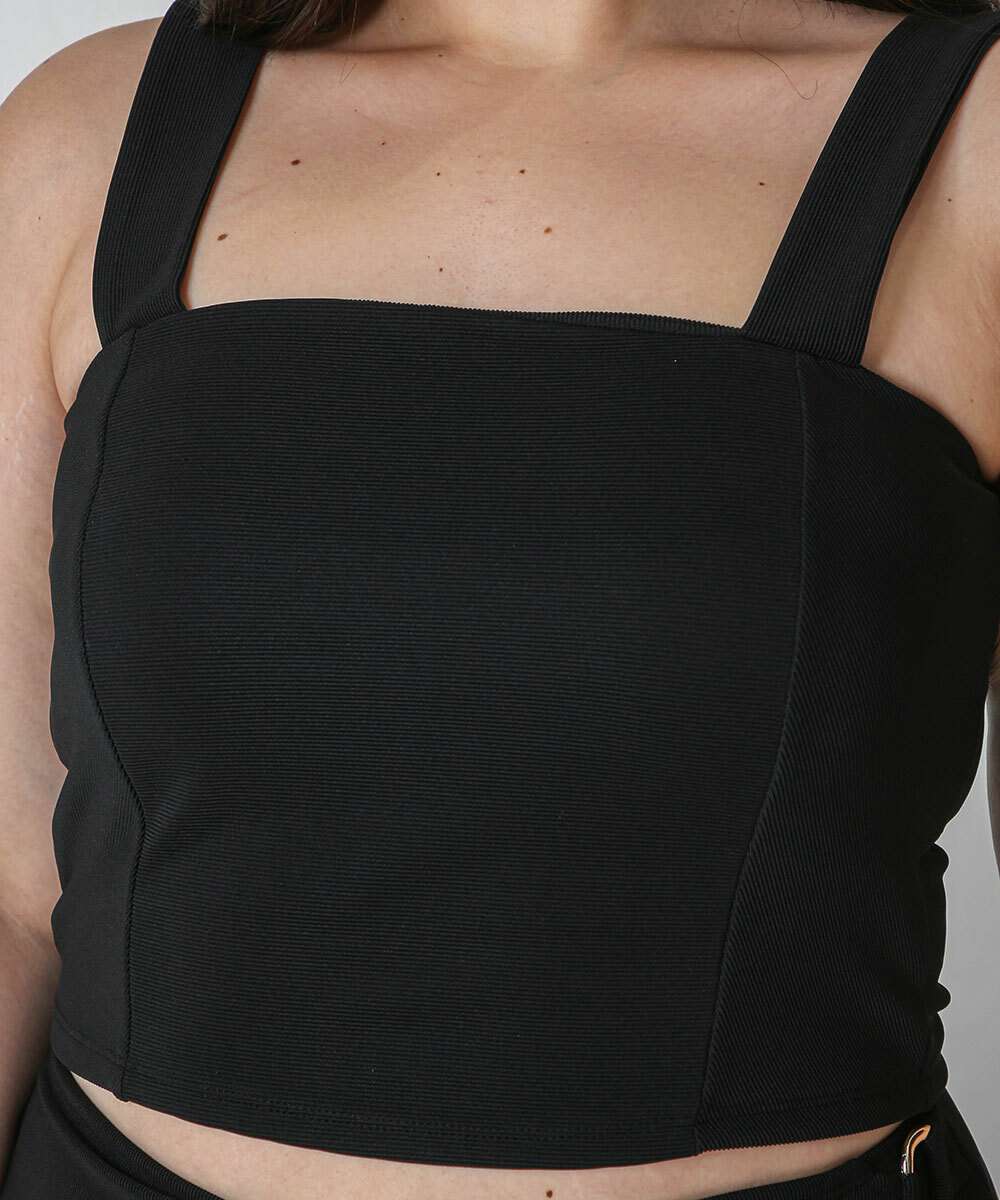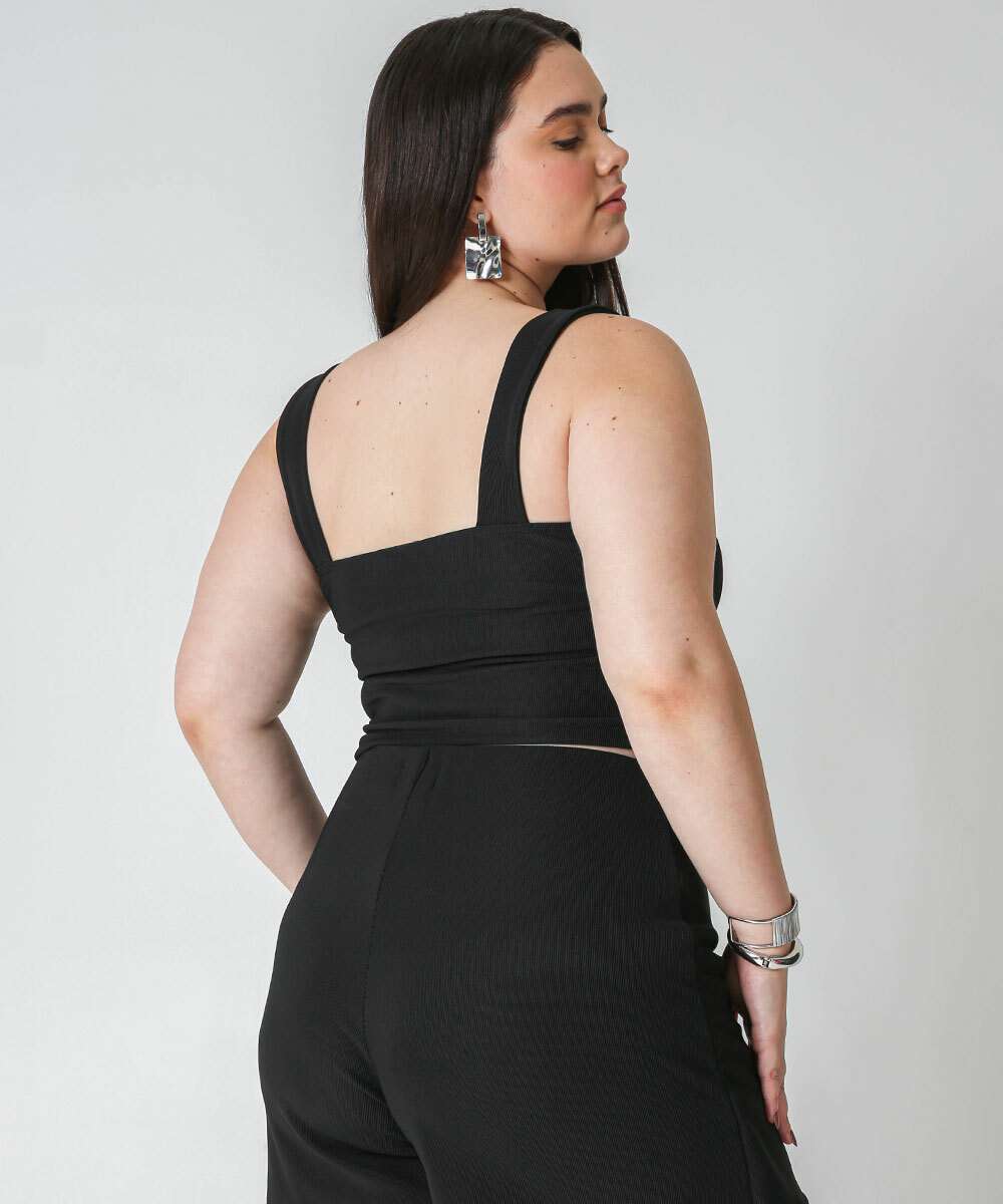 Blusa plus size feminina, modelo cropped, alças largas e decote quadrado.