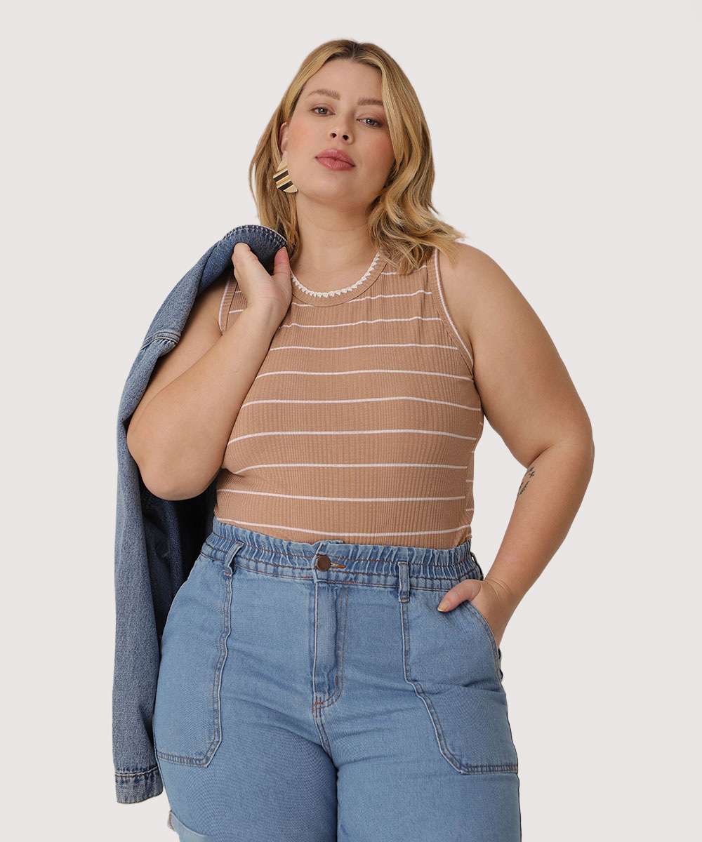Blusa Plus Size Feminina Regata Canelada Marisa