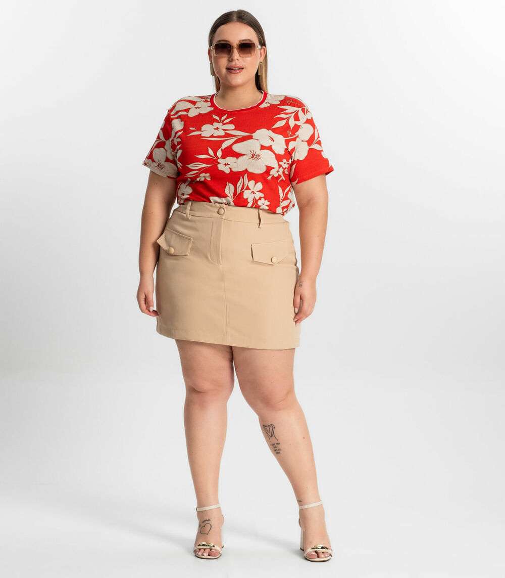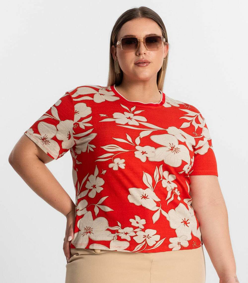 Blusa Plus Size Manga Curta Secret Glam Laranja