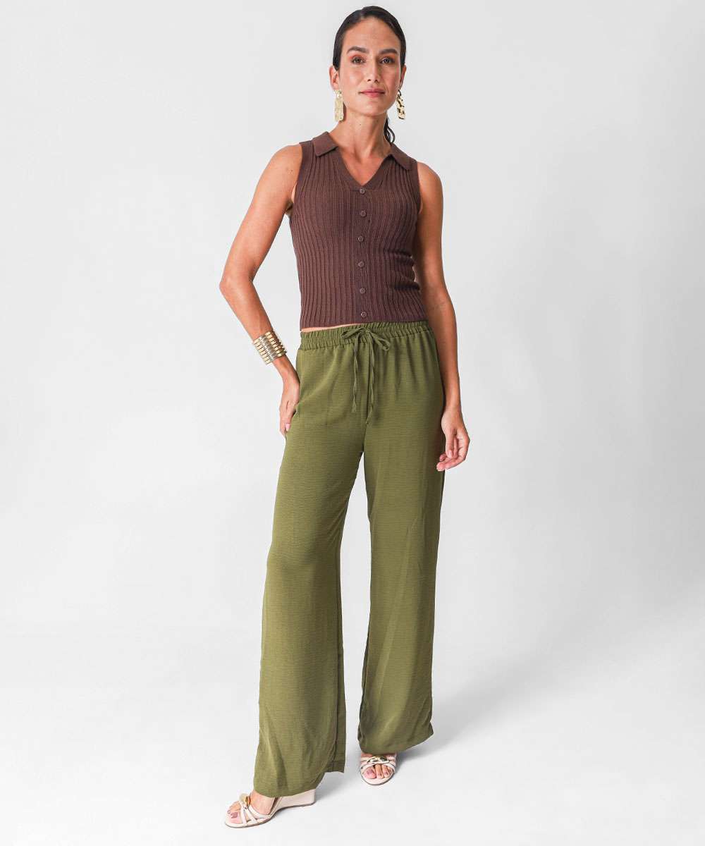 Blusa Polo Feminina Tricô Botões Sem Manga Marisa Marrom