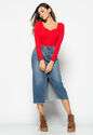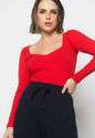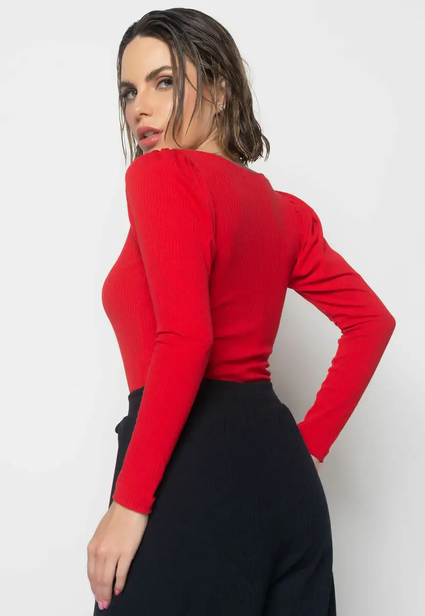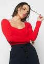 Blusa Princesa Decote Coração Malha Canelada Vermelho
