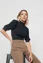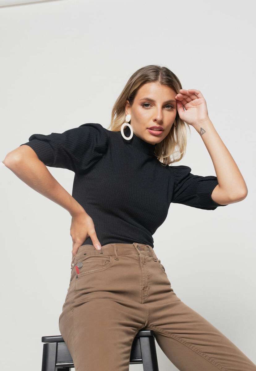 Blusa Princesa Manga Curta Canelada Preta