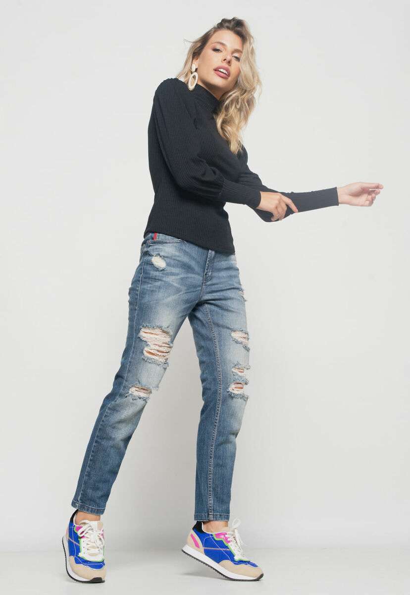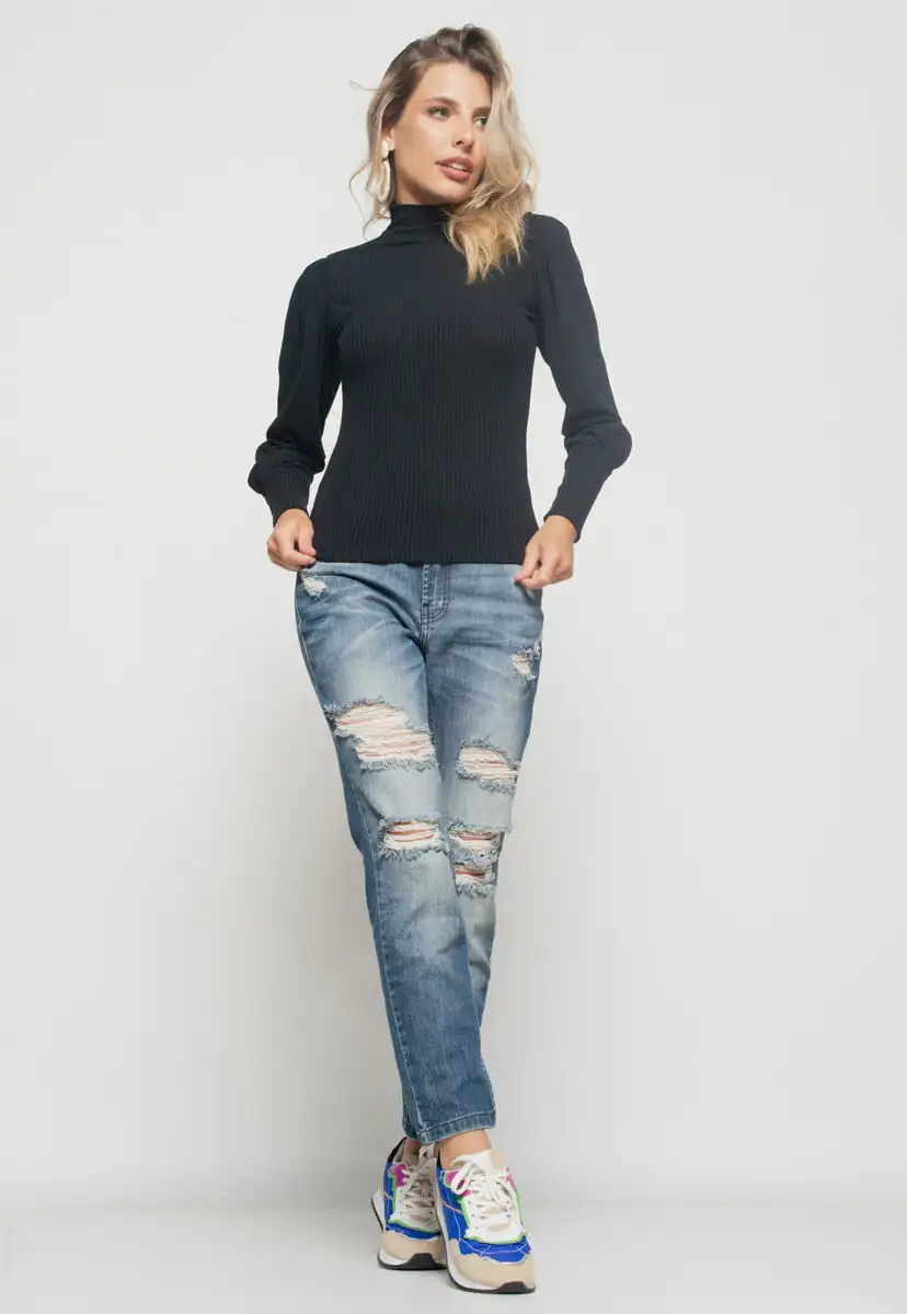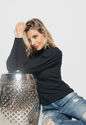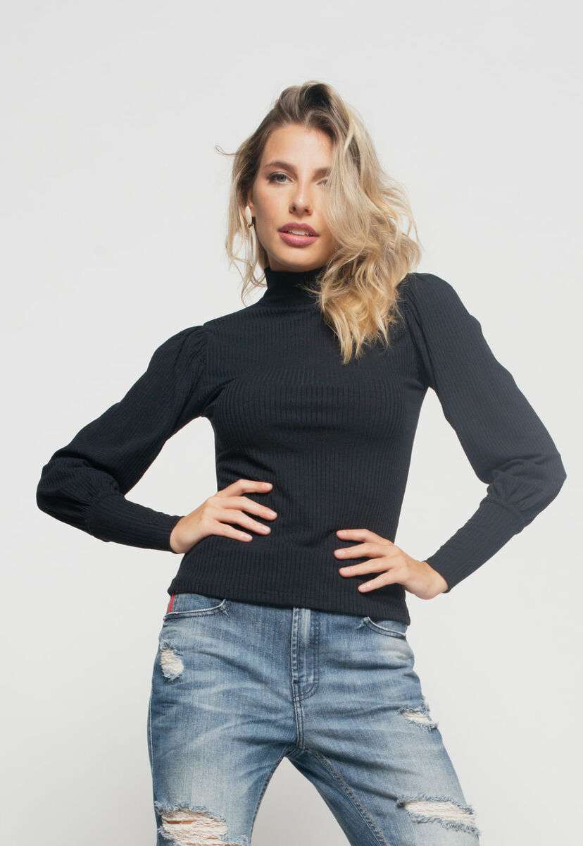 Blusa Princesa Manga Longa Canelada Preta