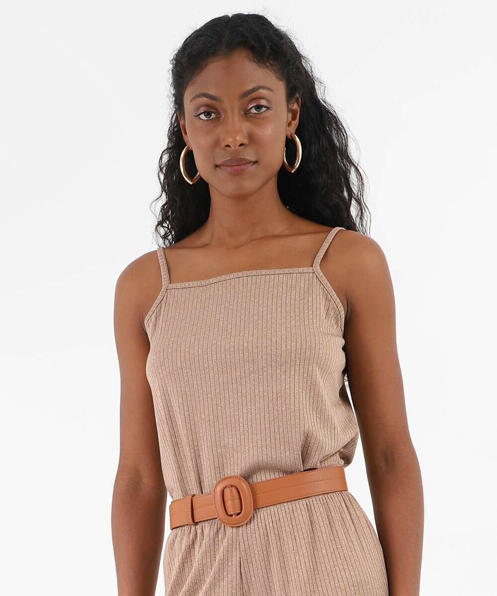 Blusa Regata Feminina Canelada Alongada Marisa Marrom