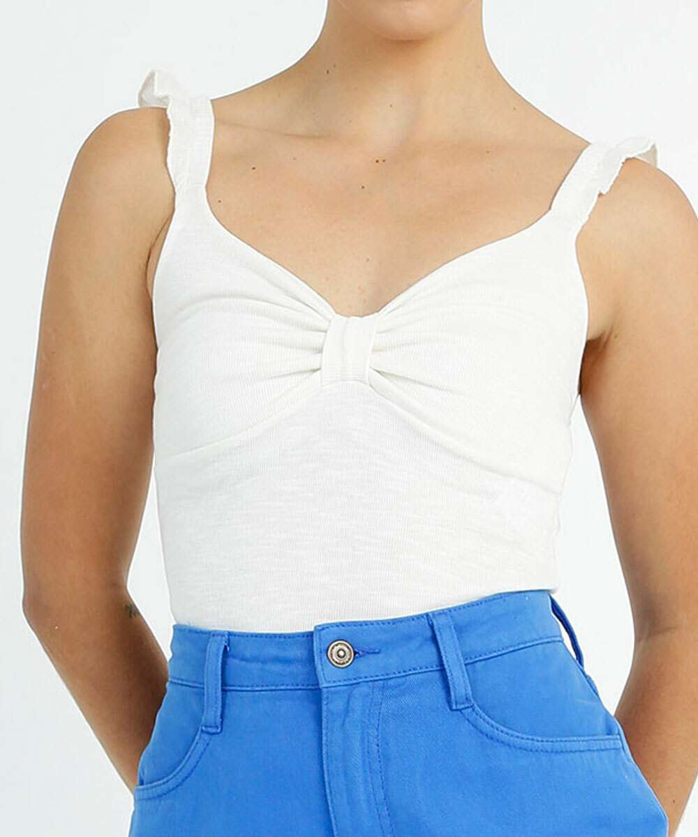 Blusa Regata Feminina Canelada Drapeada Alças Finas Babado