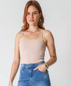 Blusa Regata Feminina Canelada Sem Costura Marisa Bege