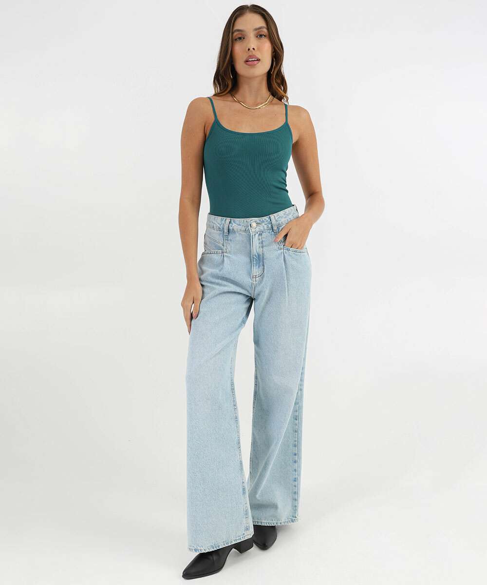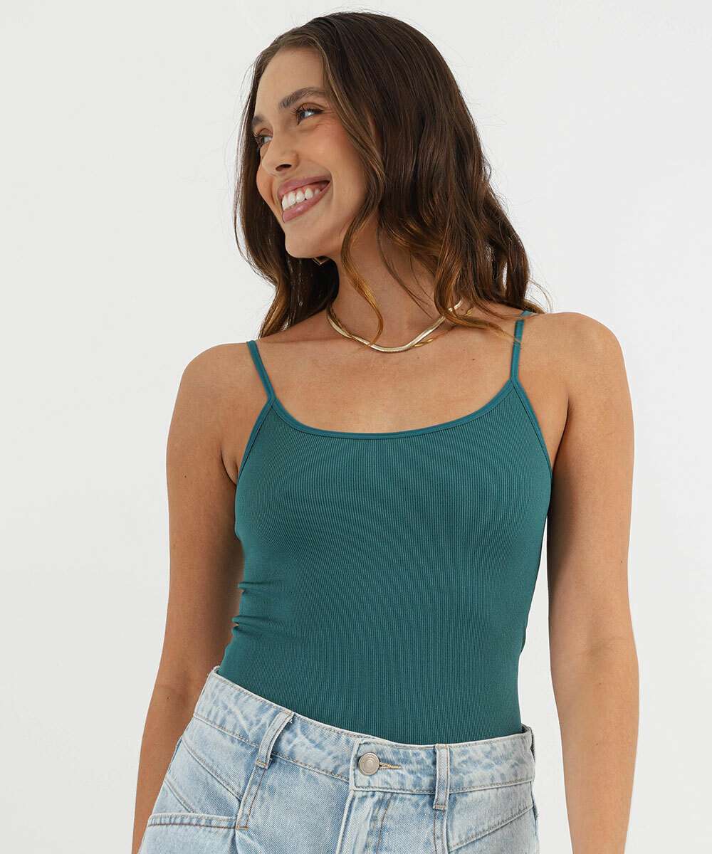 Blusa Regata Feminina Canelada Sem Costura Marisa Verde