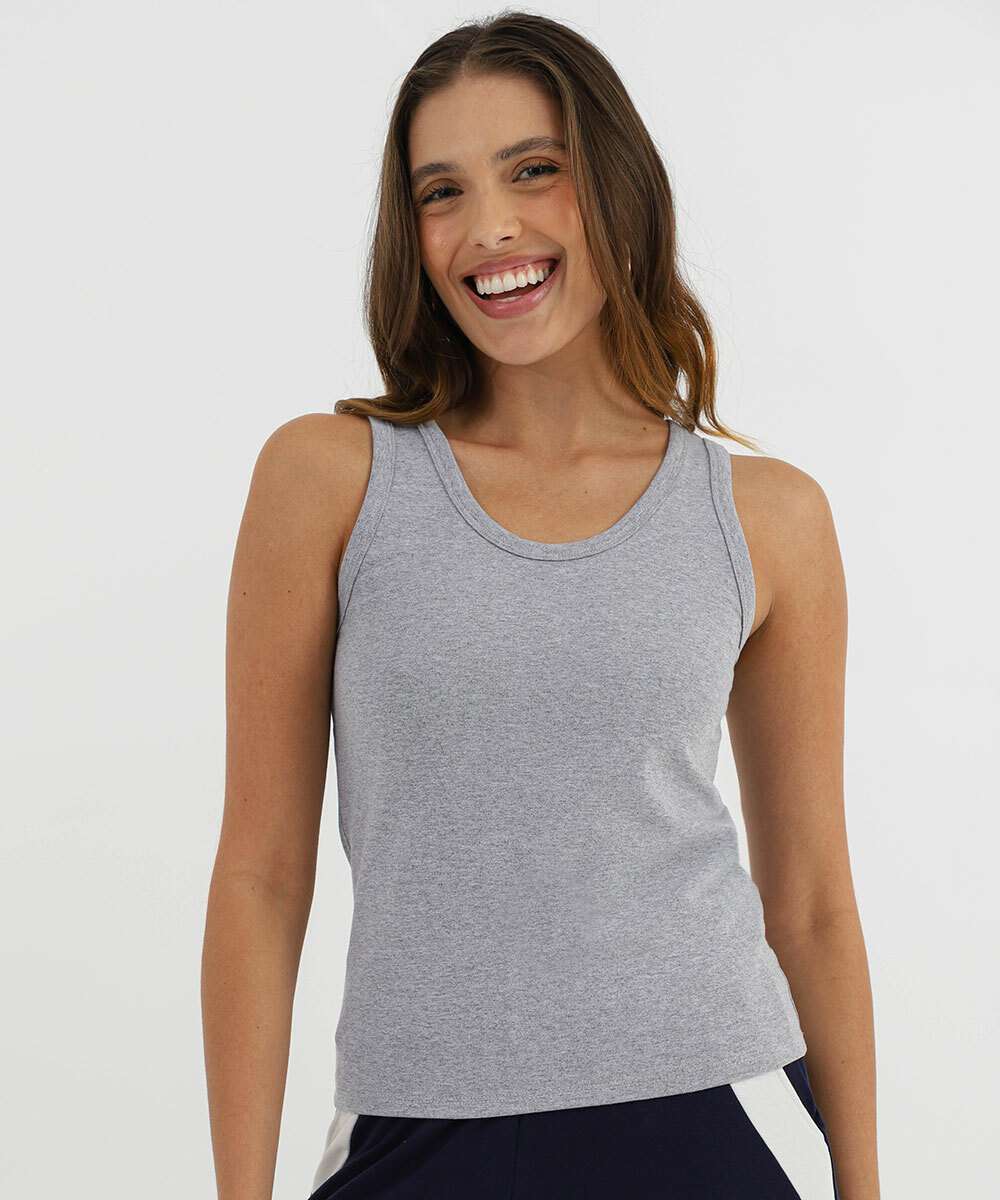 Blusa Regata Feminina Cotton Marisa Cinza