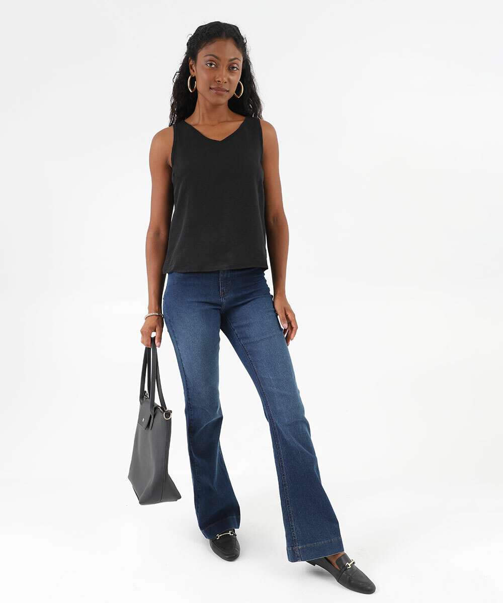 Blusa Regata Feminina Crepe Argola Marisa Preto