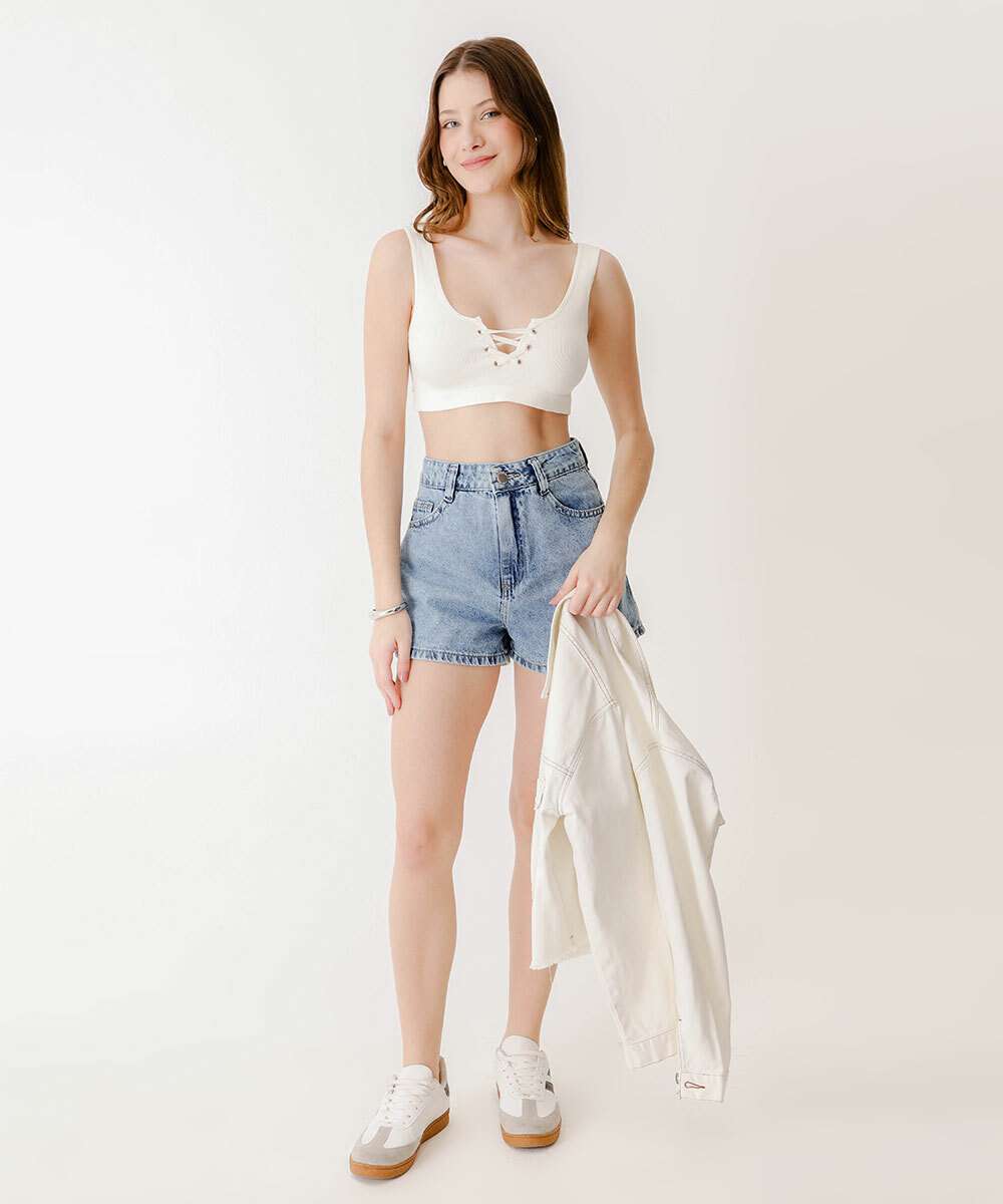Blusa Regata Feminina Cropped Marisa Off White