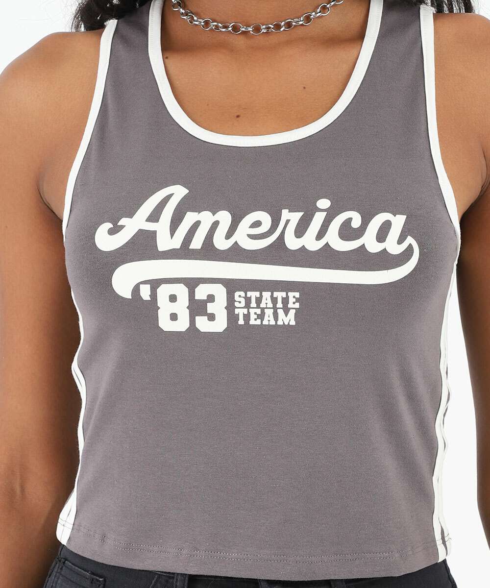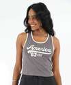 Blusa Regata Feminina Frase Listras Marisa Cinza