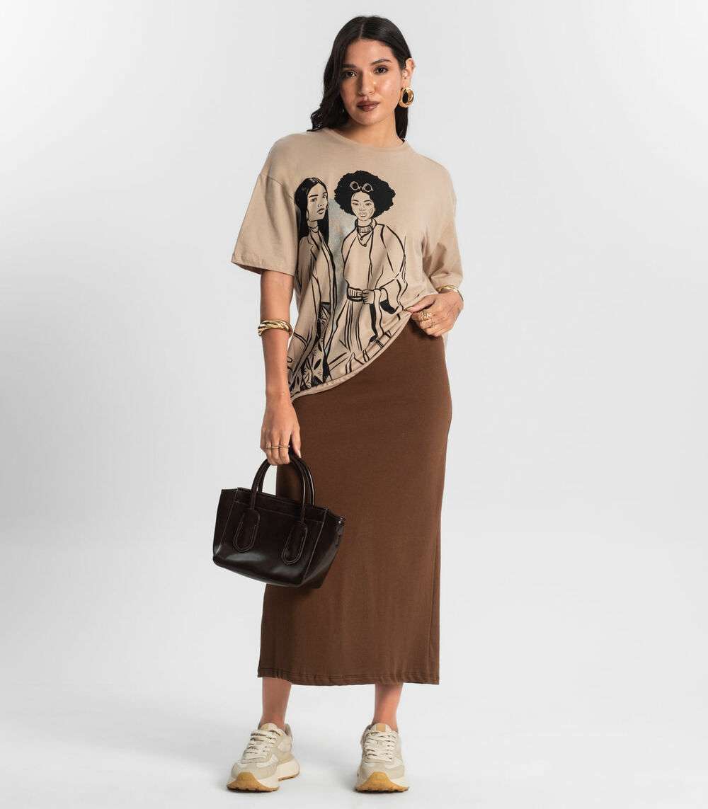 Blusa T- Shirt Feminina com Estampa Metalizada Marrom
