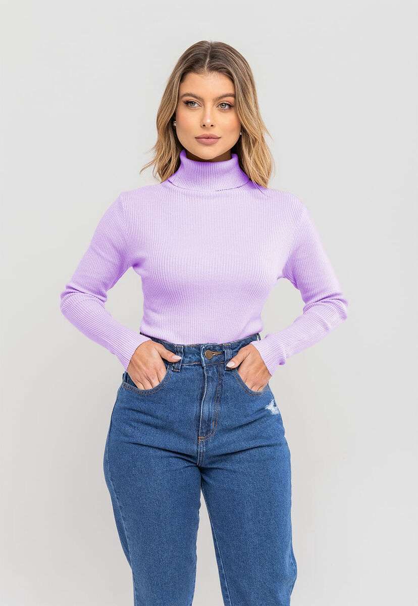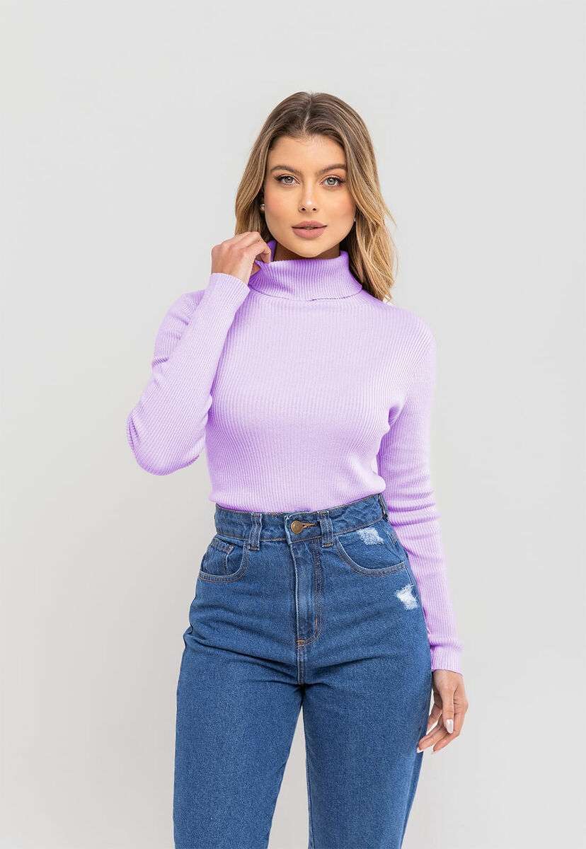 Blusa Tricot Modal Canelado Gola Rolê Lilás Salvatore