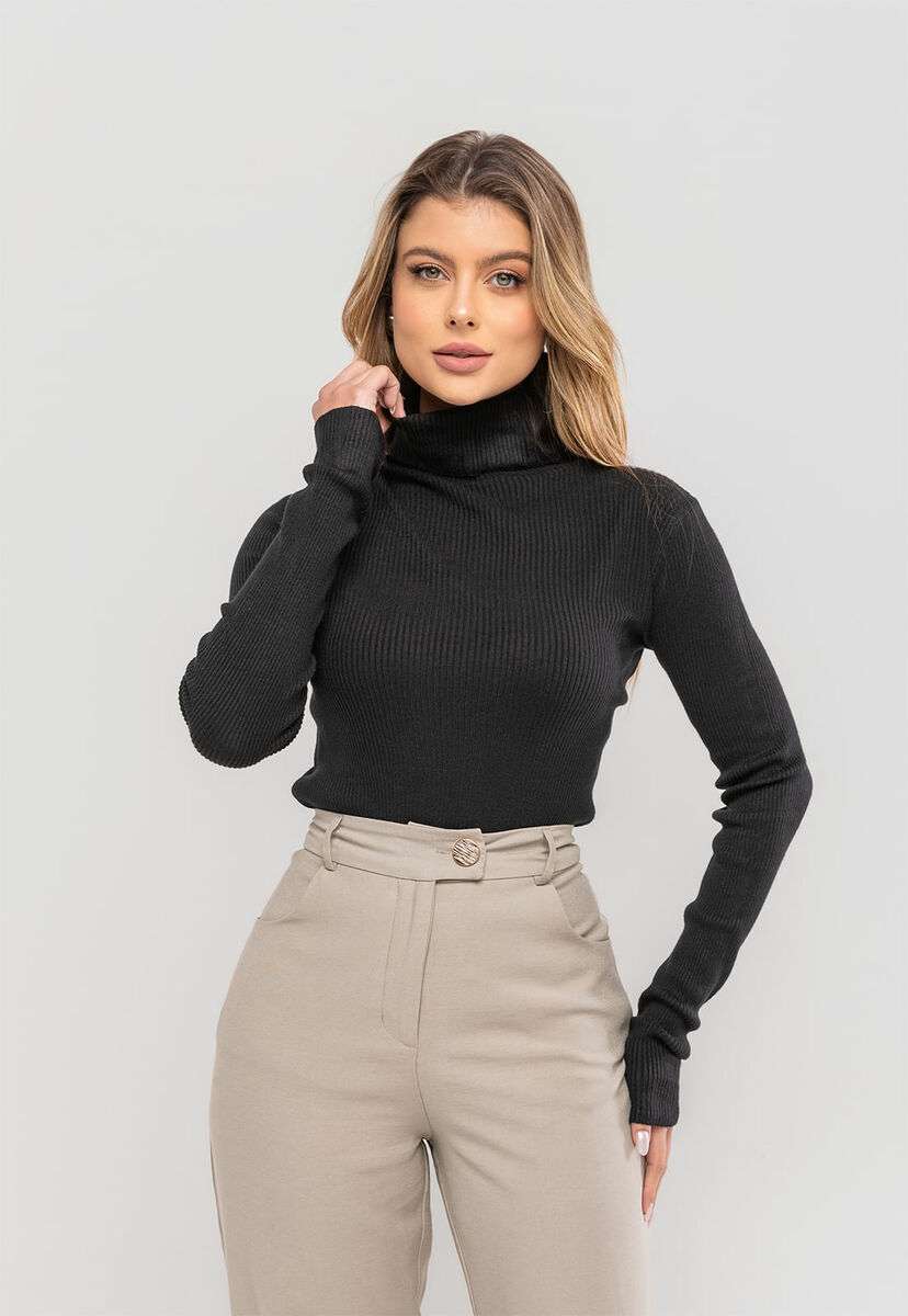 Blusa Tricot Modal Canelado Gola Rolê Preto Salvatore