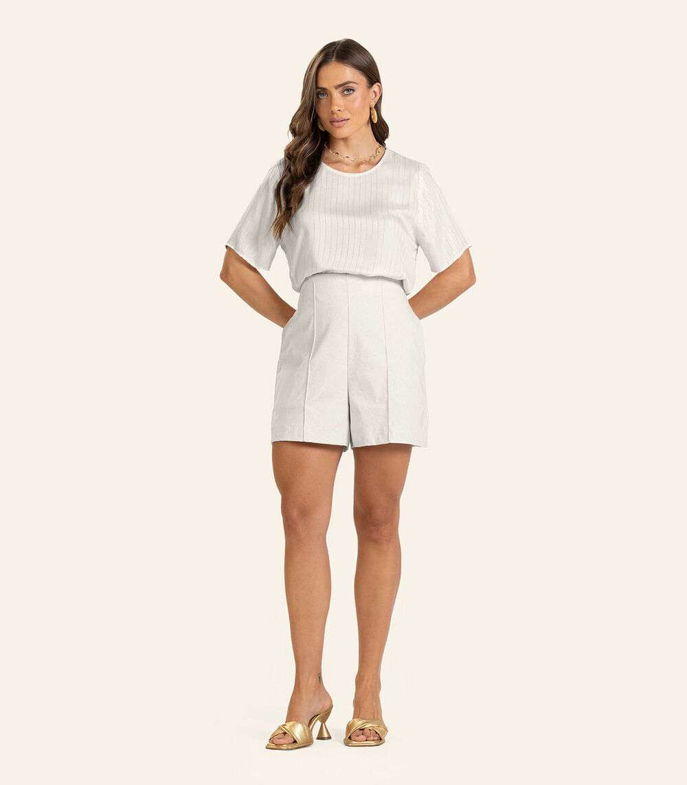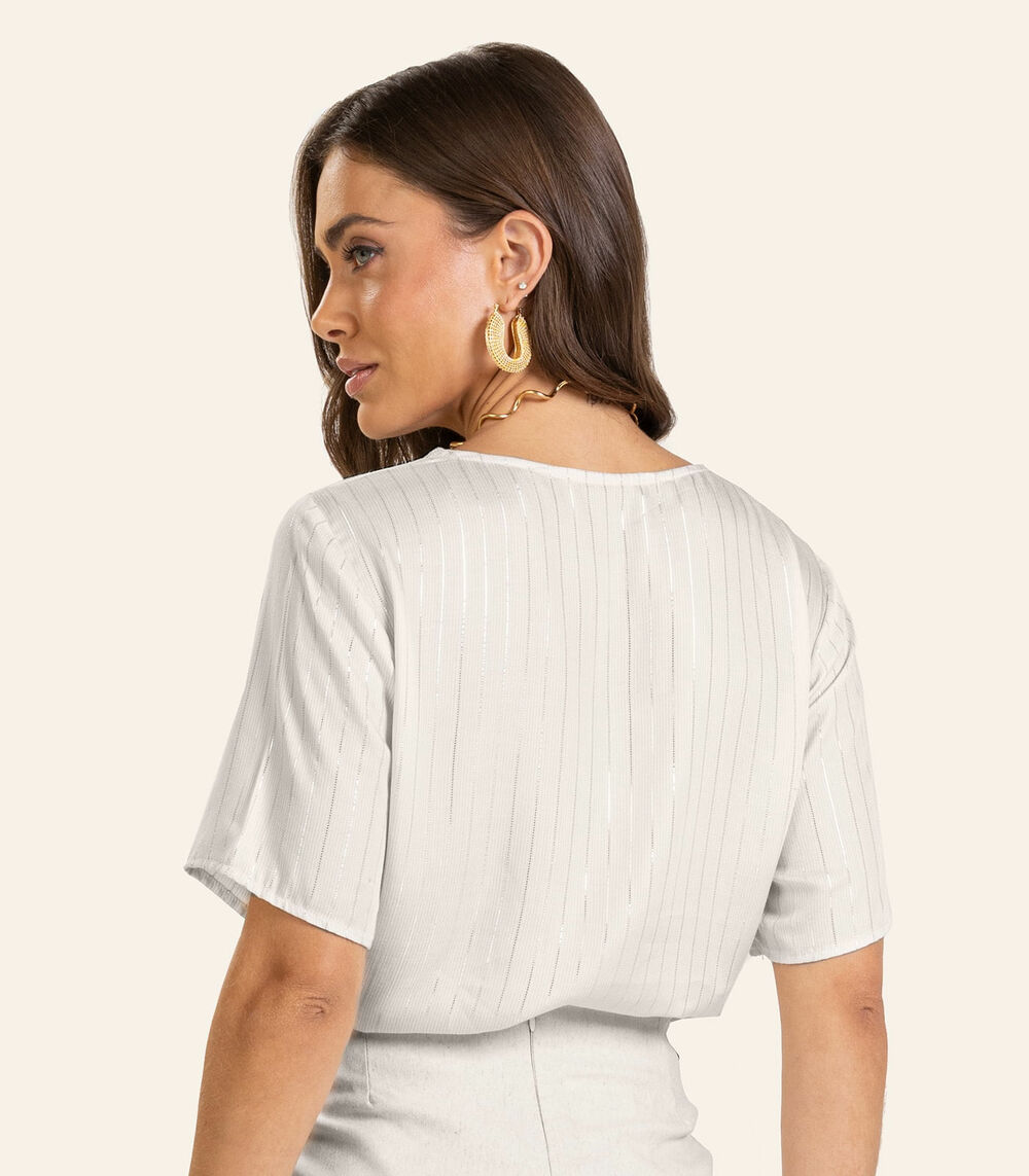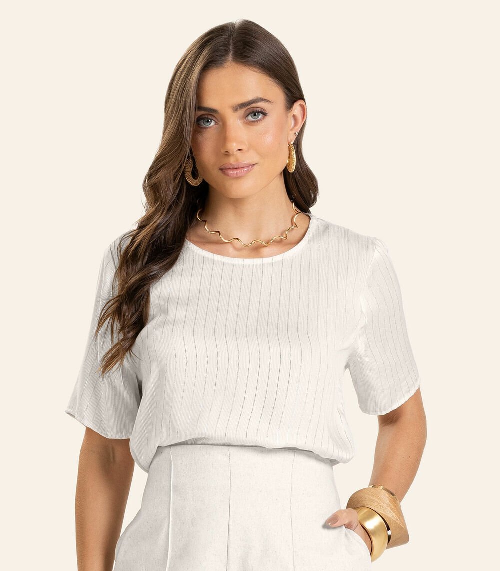 Blusa Viscose Listras manga curta Feminino Endless Bege