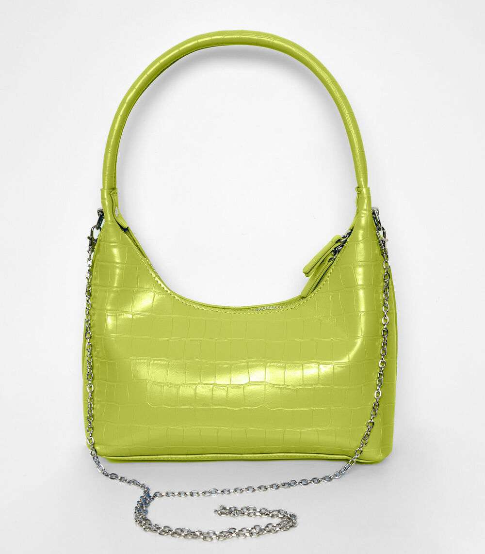 Bolsa Bela Gaia em formato meia lua em PU com amplo espaço interno para levar todos os seus itens essenciais com você. Possui alça removível em corrente para ser usada a tira colo. O material croco confere elegância sem pesar, adicionando um toque de leveza ao seu look.