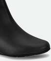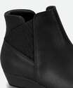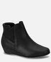 Bota feminina, confeccionada em material sintético, cano curto e bico redondo.
