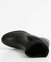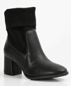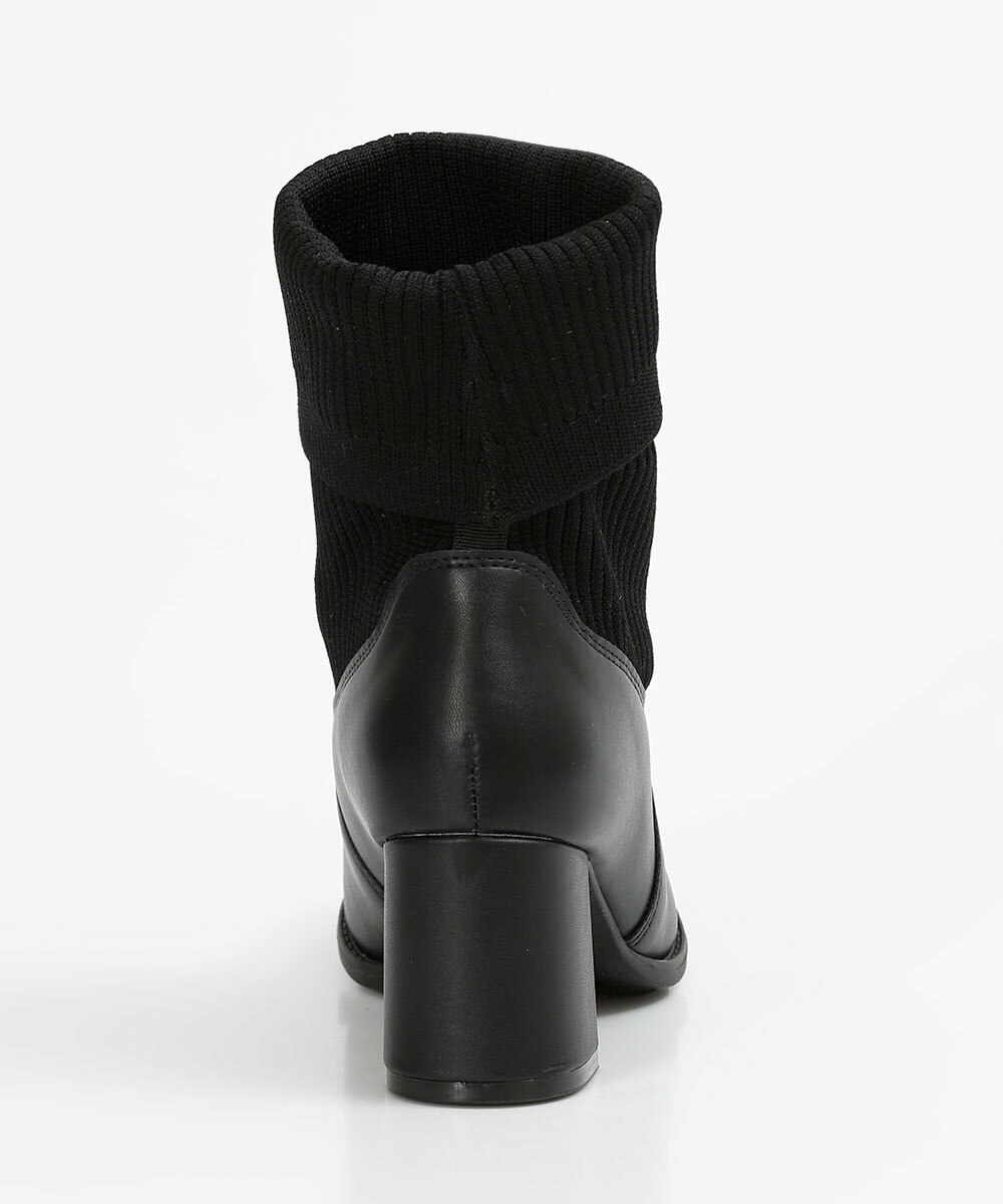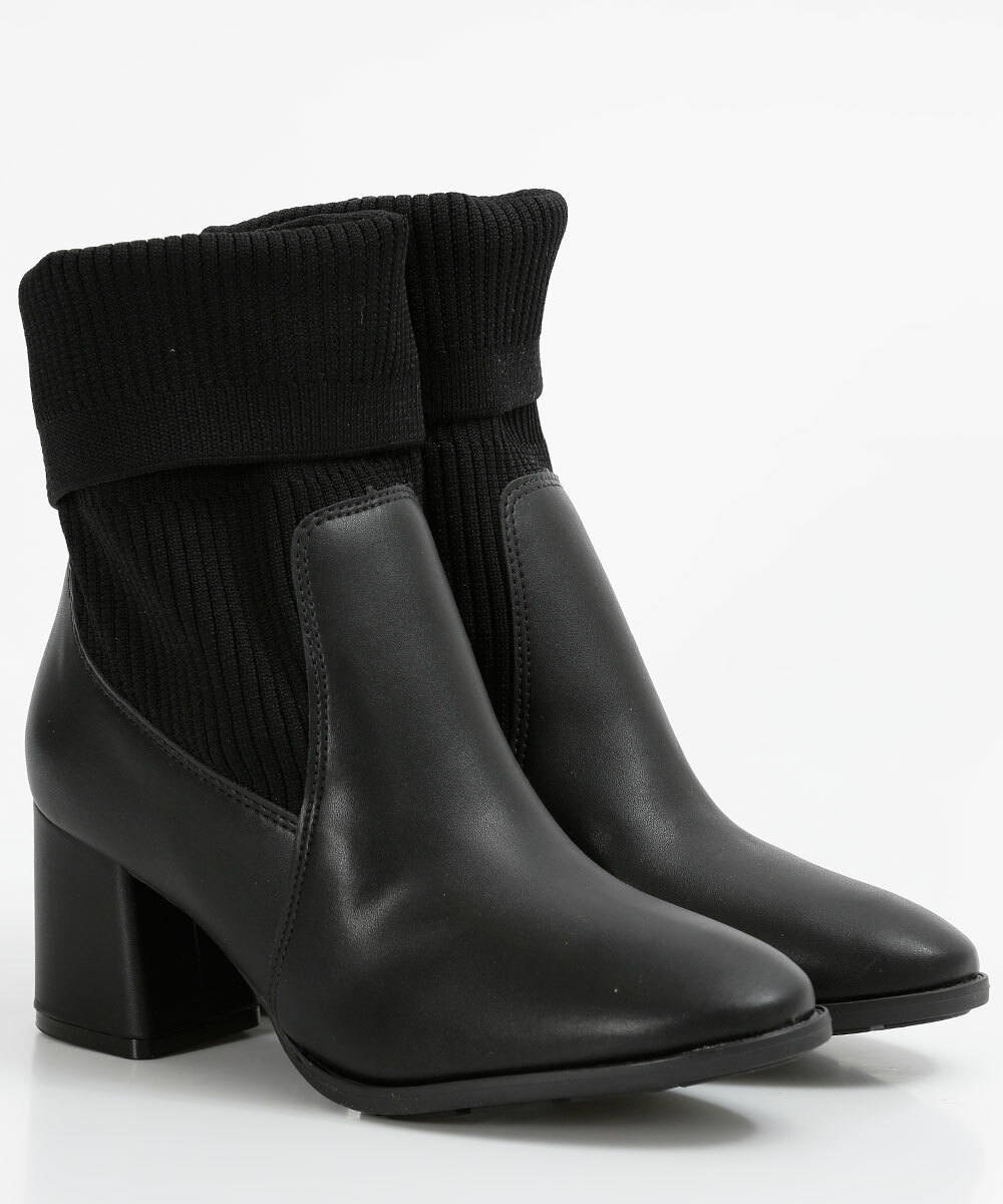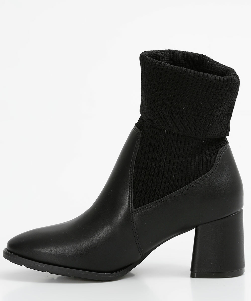 Bota feminina, modelo chelsea, confeccionada em material sintético, cano curto com elástico para facilitar o calçar, salto médio grosso e bico redondo.