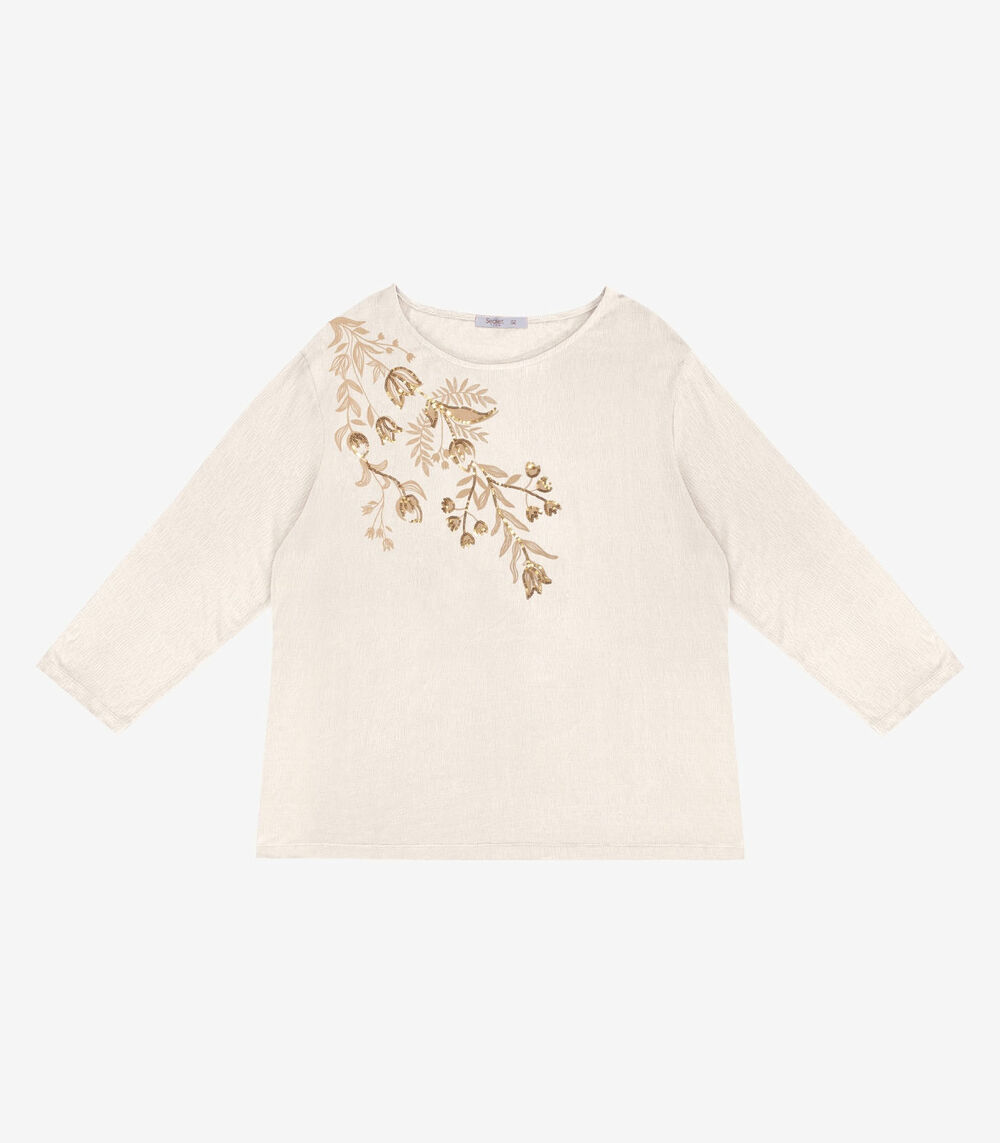 Busa De Manga Longa Bordado Plus Size Secret Glam Bege