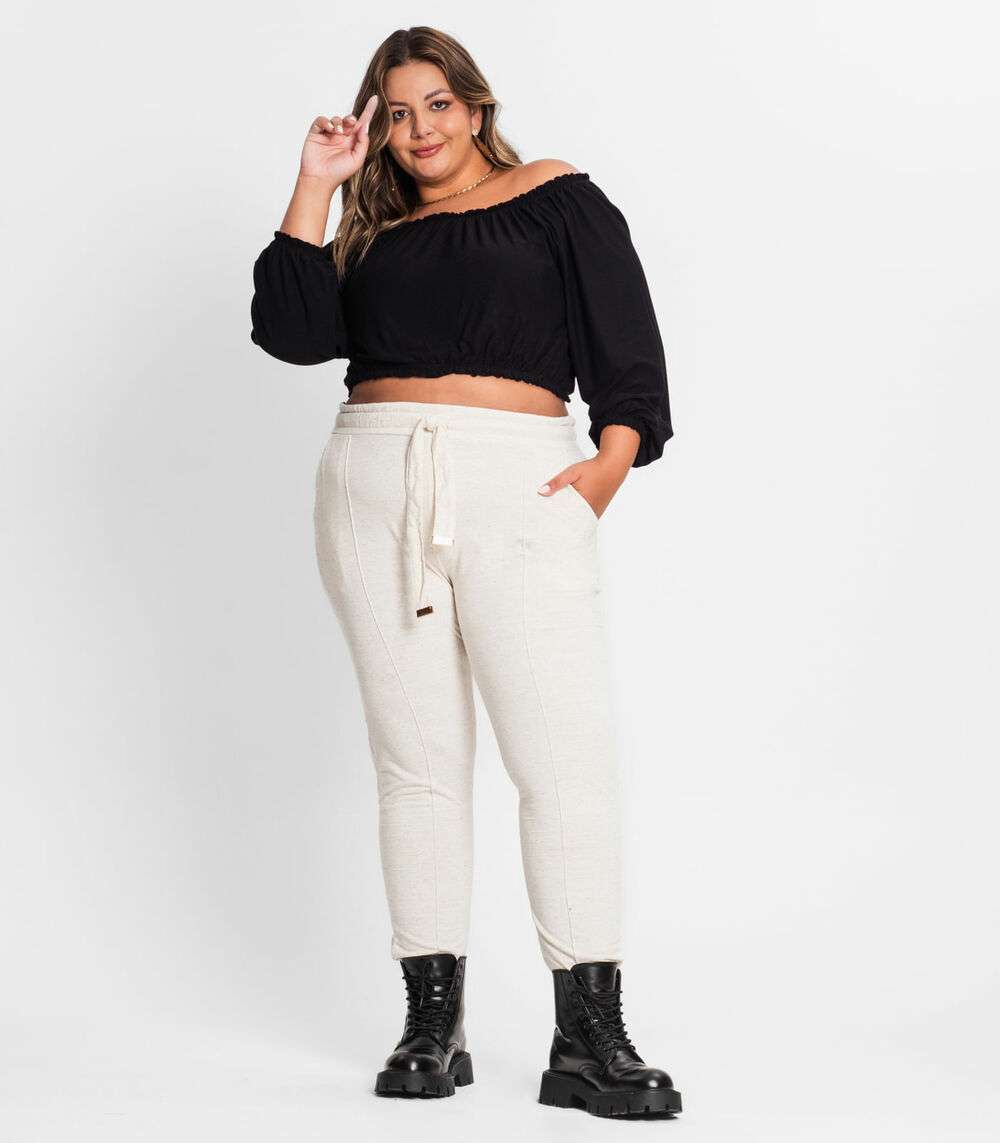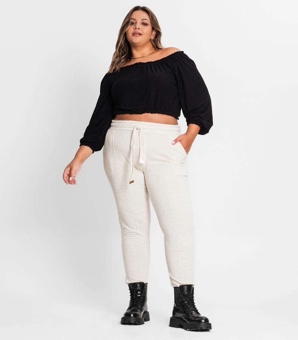 Calça Feminina Plus Size Em Moletinho Secret Glam Off White