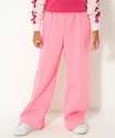 Calça infantil wide leg, confeccionada em malha moletom. Possui cós com elástico, bolsos frontais e acabamento e costura no tom.