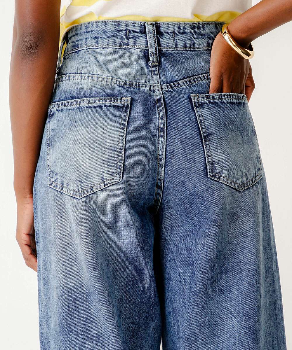 Modelo: Calça Jeans Wide Leg Feminina Marmorizada Bolsos Marisa