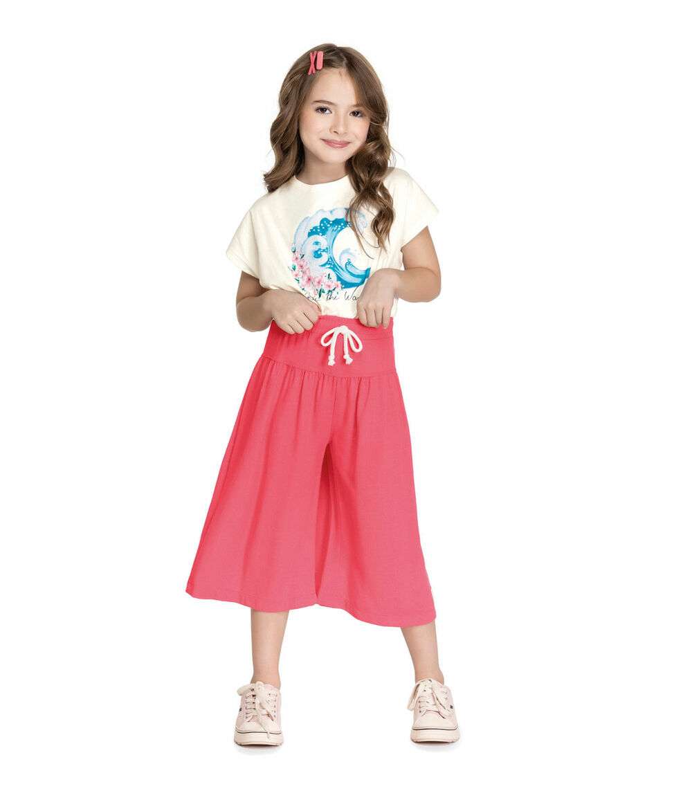 Calça Infantil desenvolvida em Linho. Modelo Pantacourt com comprimento abaixo dos joelhos. Possui elástico na cintura e cadarço decorativo. Peça leve e estilosa, ideal para os dias de verão. Combine com: blusa e tênis.