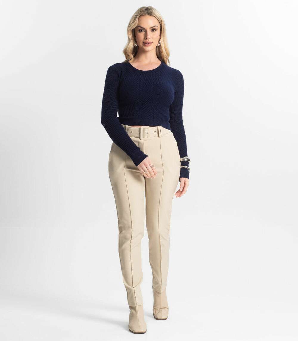 Calça Alfaiataria Tradicional Com Cinto Select Bege