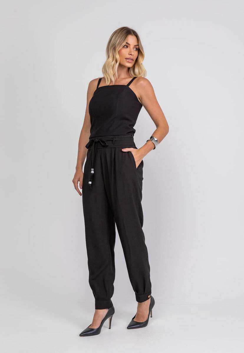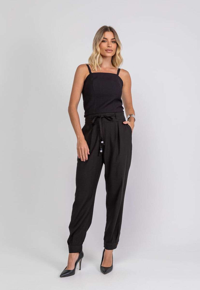 A Calça Alfaiataria com Pregas combina sofisticação e elegância.Com cintura alta que valoriza a silhueta, possui cós com passantes e um charmoso cordão com ponteiras de miçangas, agregando um toque artesanal.As pregas frontais garantem fluidez, enquanto os bolsos embutidos posteriores aplicados equilibram funcionalidade e estilo casual-chic.O diferencial fica por conta das barras ajustáveis com abertura lateral e botão, permitindo um caimento personalizado.Versátil e refinada, é ideal para quem busca conforto sem abrir mão da elegância. • Tecido: Alfaiataria Marrant • Bolsos Funcionais • Cinto de Faixa com Ponteiras • Pregas Frontais • Botão na Barra• Bolsos Funcionais Laterais e Posteriores Medidas da modelo: Altura 1,72cm | Busto 87cm | Cintura 66cm | Quadril 94cm | Manequim 36Modelo veste PComposição: 92% Viscose, 8% Elastano