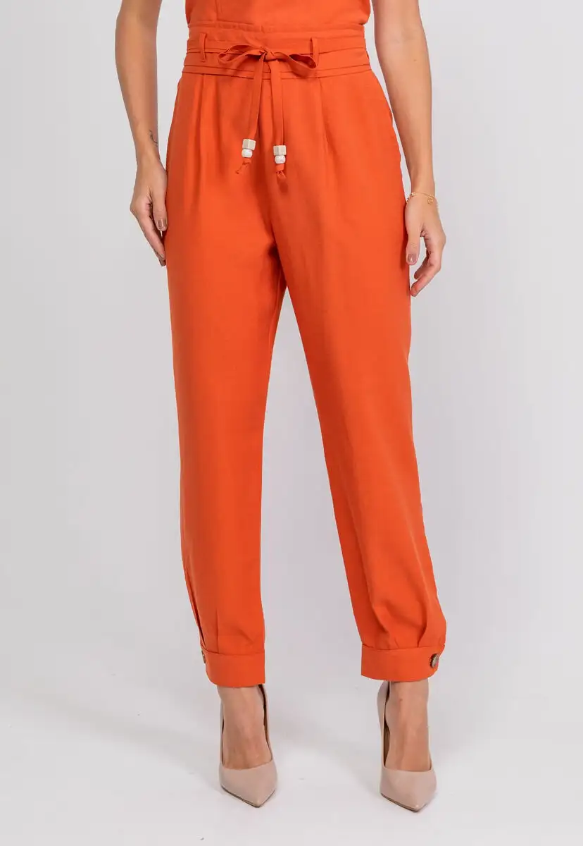A Calça Alfaiataria com Pregas combina sofisticação e elegância.Com cintura alta que valoriza a silhueta, possui cós com passantes e um charmoso cordão com ponteiras de miçangas, agregando um toque artesanal.As pregas frontais garantem fluidez, enquanto os bolsos embutidos posteriores aplicados equilibram funcionalidade e estilo casual-chic.O diferencial fica por conta das barras ajustáveis com abertura lateral e botão, permitindo um caimento personalizado.Versátil e refinada, é ideal para quem busca conforto sem abrir mão da elegância. • Tecido: Alfaiataria Marrant • Bolsos Funcionais • Cinto de Faixa com Ponteiras • Pregas Frontais • Botão na Barra• Bolsos Funcionais Laterais e Posteriores Medidas da modelo: Altura 1,72cm | Busto 87cm | Cintura 66cm | Quadril 94cm | Manequim 36Modelo veste PComposição: 92% Viscose, 8% Elastano