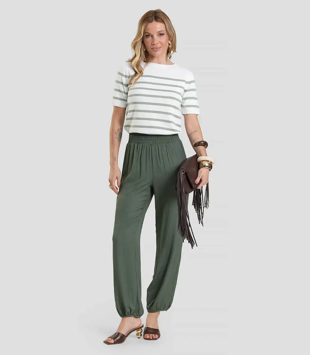 Calça Feminina Aladim em Tecido Viscose Dianna Verde