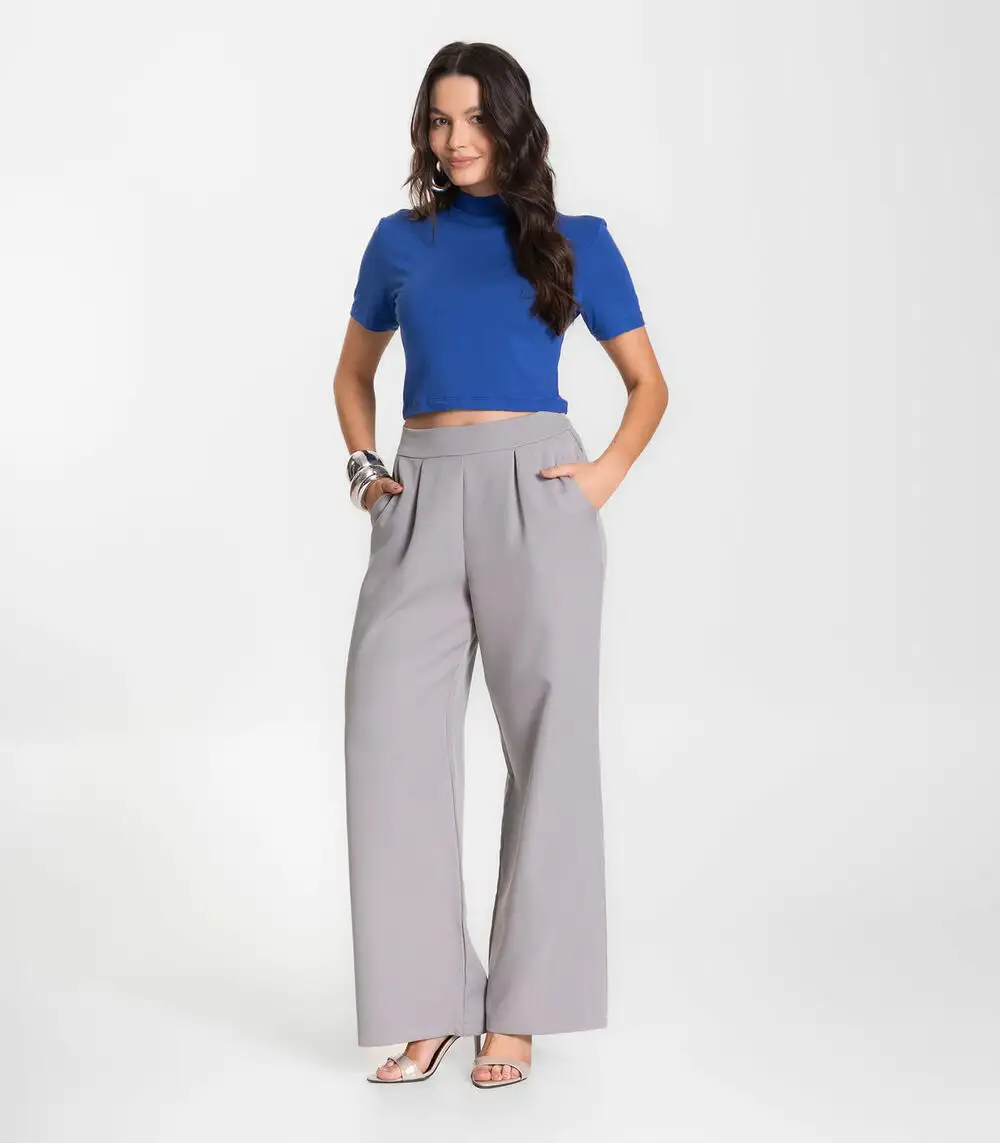 Calça Feminina Alfaiataria Com Bolsos Renaluci Cinza